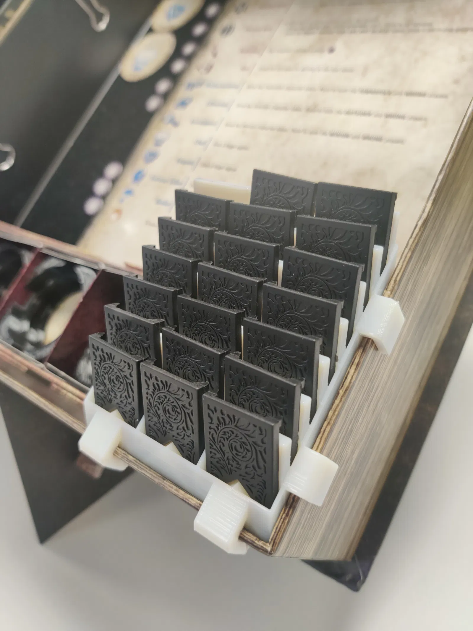 Đây là một phụ kiện kẹp nhỏ được thiết kế để giữ các tấm che tử thần (death shroud) của bạn ở một nơi dễ lấy, thay vì phải đối phó với việc chúng lục cục trong hộp đựng (grim). Nó được thiết kế để kẹp vào góc dưới bên phải của hộp, nhưng tôi cũng đã bao gồm một phiên bản với các kẹp ở phía bên trái cho những người thuận tay trái có cách sắp xếp hộp khác đi. Được thiết kế để dễ dàng in bằng FDM, với rất ít giá đỡ.