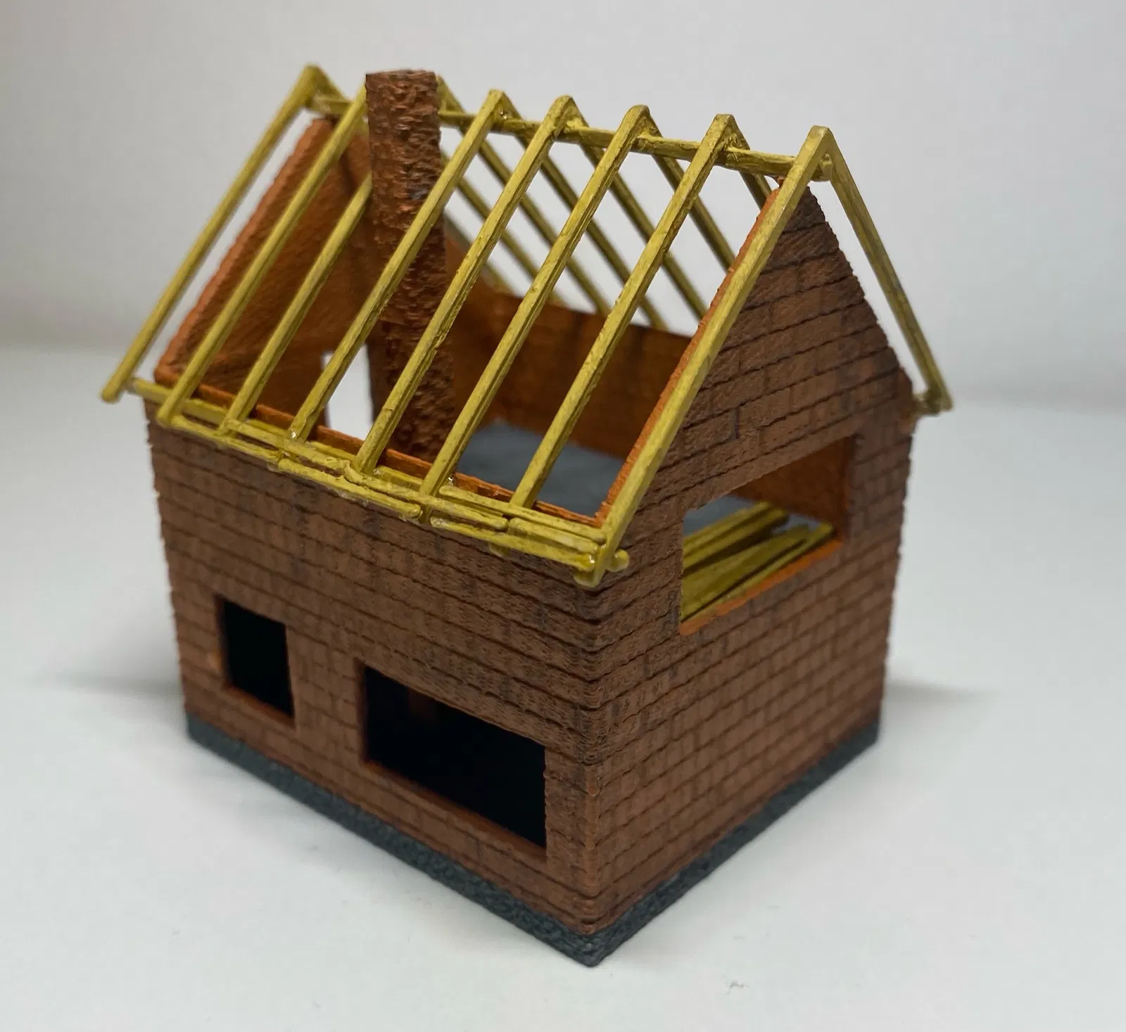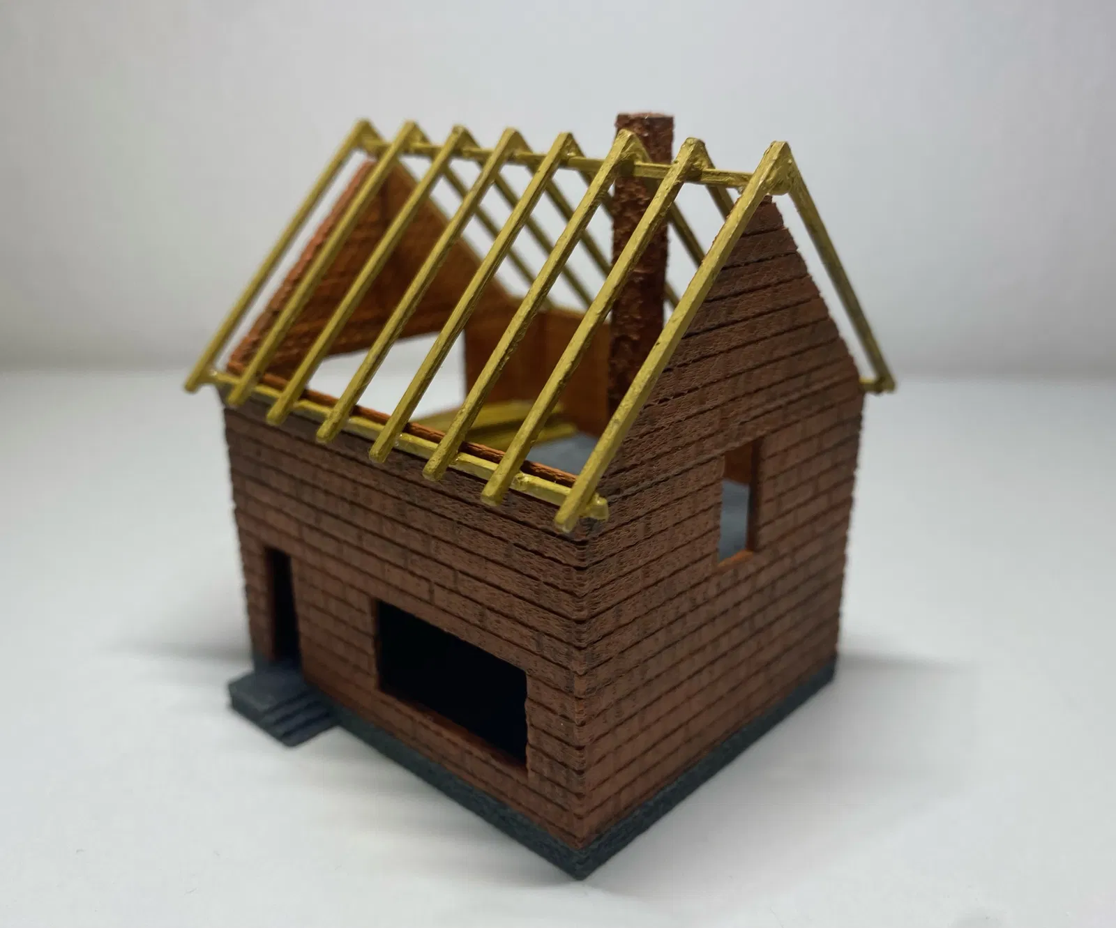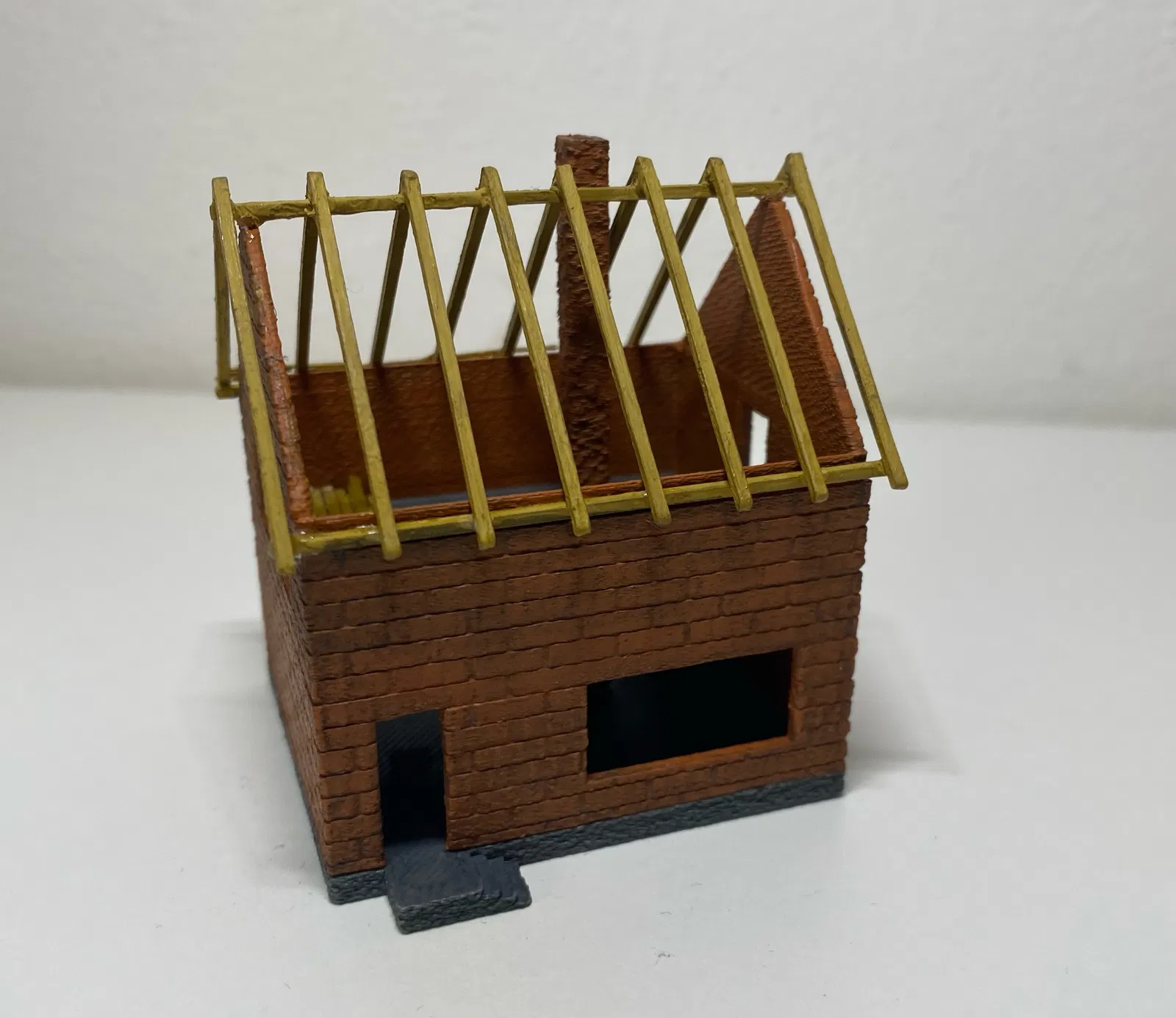 Mô hình nhà nhỏ đang trong quá trình xây dựng, tỉ lệ H0/HO và TT. Bản in có thể không cần support với cài đặt fuzzy skin đề xuất.