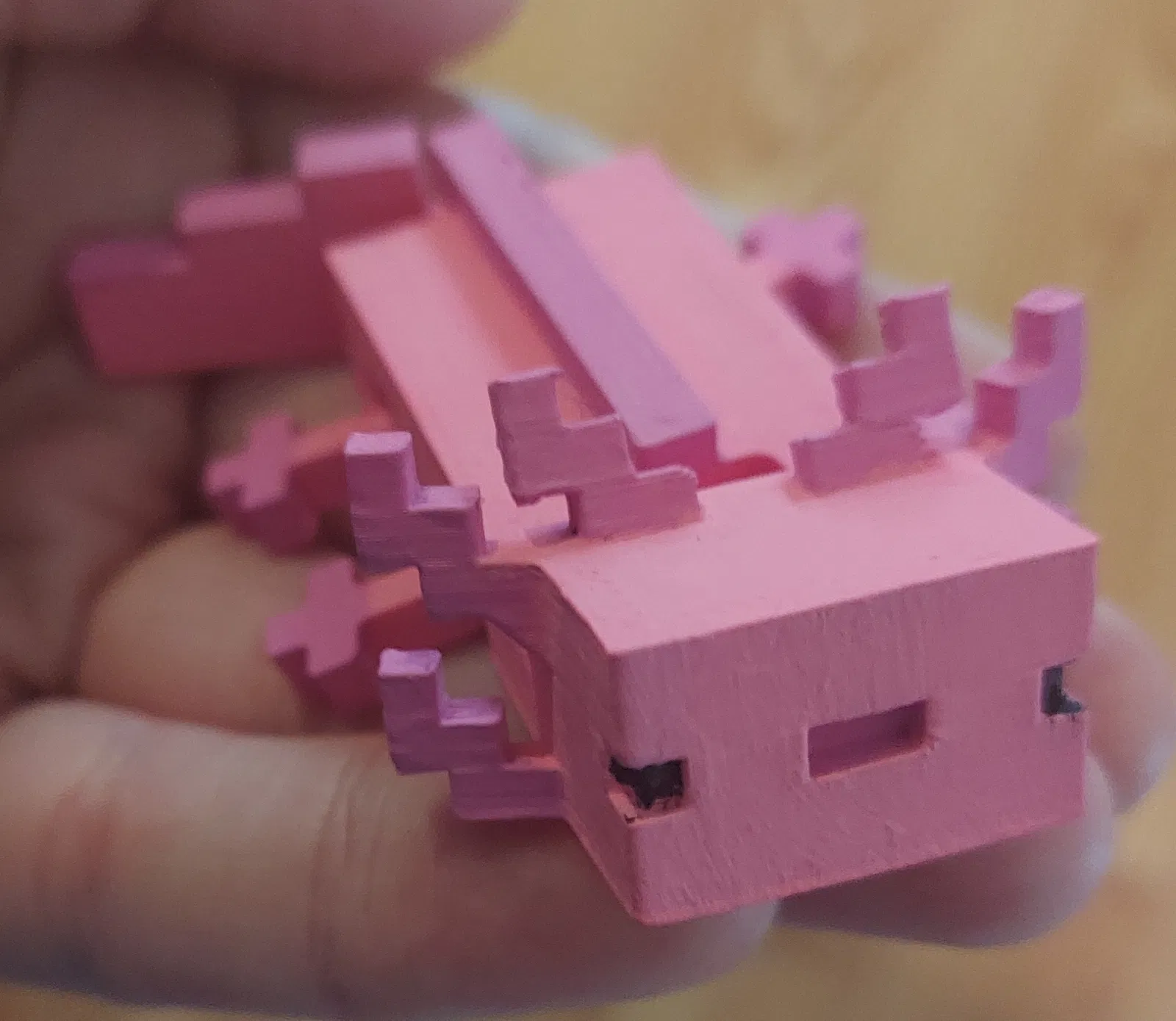 Để in, bạn chỉ cần in mẫu "Axolotl Articulated (Face)" và quyết định xem bạn có muốn thêm chi tiết mắt và miệng hay không. Trong ảnh của tôi ở trên, tôi đã thêm các bộ phận mắt và miệng vào con axolotl màu nâu, nhưng bạn cũng có thể tô màu cho con Axolotl màu hồng (Cách nào cũng được hết!).