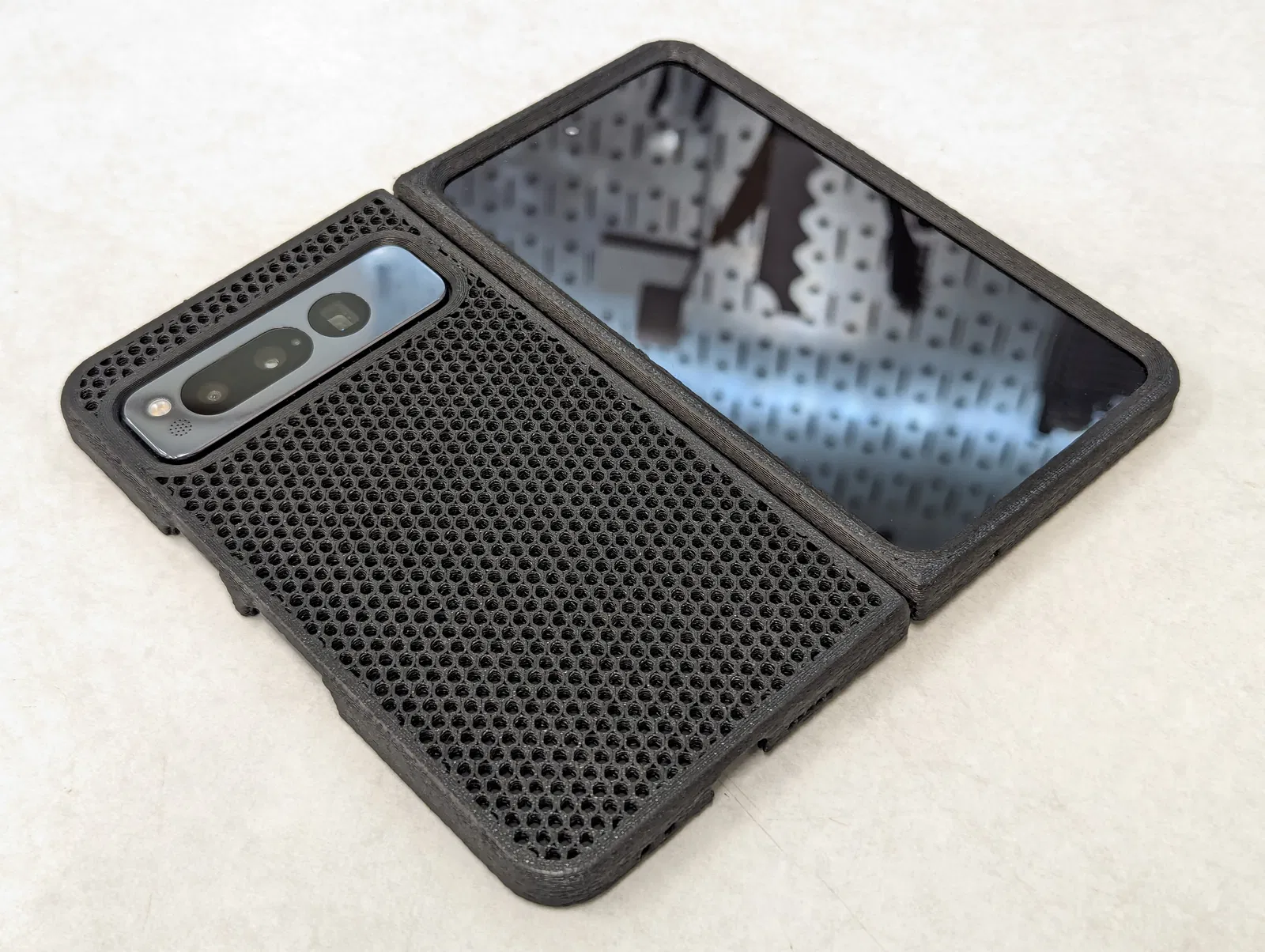 Chiếc ốp lưng Pixel Fold đơn giản này được thiết kế để thay thế chiếc ốp DBrand đã hỏng của người dùng. Phiên bản có kèm bộ chặn Fuzzy Skin và tùy chọn in hoa văn honeycomb. Đã cập nhật để có lỗ loa thoại và tùy chọn Mag Safe Spigen.