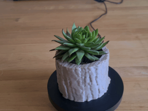 Một chậu hoa/chậu trồng cây đơn giản với vân gỗ bên ngoài. Tôi thiết kế nó bằng cách quét 3D một khúc gỗ và chỉnh sửa nó để làm chậu. Vân bên ngoài có thể không hoàn toàn hoàn hảo, nhưng khúc gỗ thì cũng vậy.