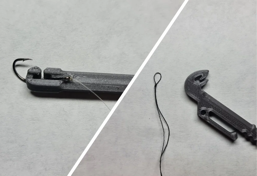 Dụng cụ này giúp việc buộc các vòng dây câu chắc chắn trở nên dễ dàng và rút lưỡi câu ra khỏi cá một cách hiệu quả. Kích thước lỗ rút lưỡi câu là 2mm chiều ngang (5mm chiều dài), nên lưỡi câu lớn có thể sẽ không vừa. Kích thước vòng dây câu tạo ra khoảng 4mm đường kính. Chiều dài dụng cụ khoảng 195 mm.