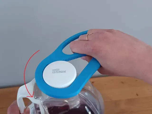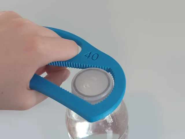 Cái mở nắp chai này giúp người bị viêm khớp, người có khả năng vận động ngón tay hạn chế hoặc các khuyết tật khác mở nắp chai nước tiêu chuẩn (⌀ 30 mm hoặc 1.18 in).