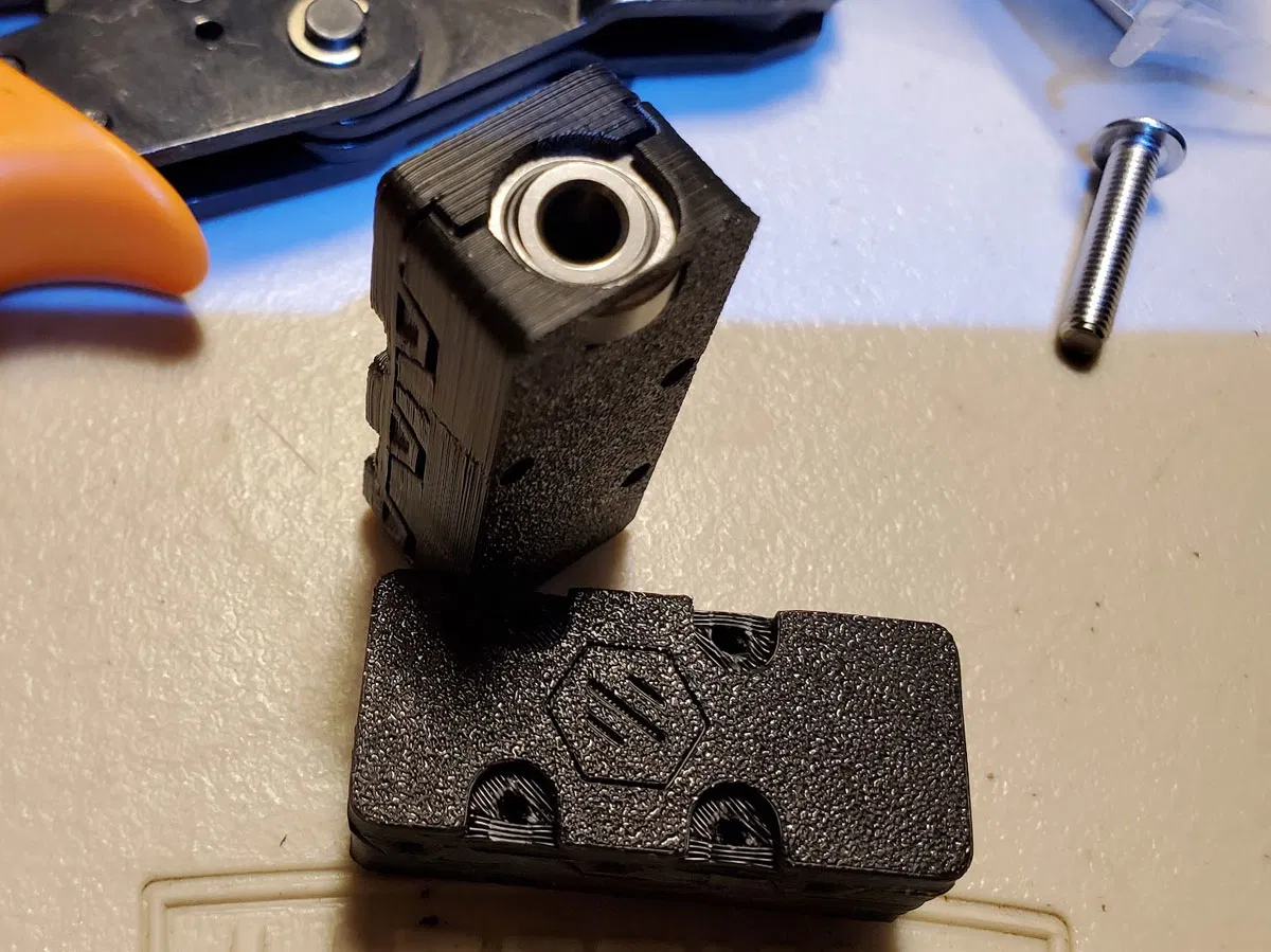 Cập nhật 27/05/2023: Cảm ơn các bình luận và góp ý trên reddit, đặc biệt là về độ bền của khớp nối tách rời, tôi đã thiết kế lại để nó cứng cáp hơn (cảm giác chắc chắn hơn hẳn). Để gia cố phần tách rời, tôi đã di chuyển phần tách lên phía trên (thay vì dọc theo giữa vòng bi). Tôi đề xuất dùng keo siêu dính và nó sẽ rất chắc (tôi đã phải cắt vòng bi ra khỏi một bộ phận).
