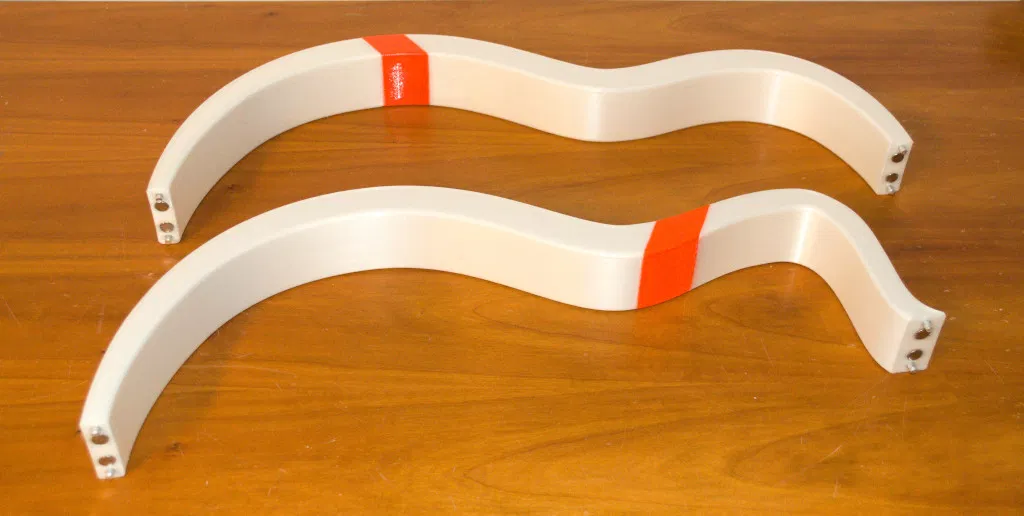 Các cánh đàn quá lớn để in như một đơn vị duy nhất, ngay cả trên Prusa XL. Do đó, tôi đã cắt chúng thành nhiều phần. Bạn có thể chọn sử dụng công cụ cắt trong phần mềm cắt lát, nhưng tôi đã sử dụng OpenSCAD. Lý do là bạn sẽ không thể che giấu "vết cắt", và mẹo cũ là: nhấn mạnh những gì bạn không thể che giấu. Vì vậy, ý tưởng là làm cho vết cắt trở thành một phần của thiết kế; trong trường hợp này, với sự thay đổi màu sắc. Và kết quả là, tôi muốn các vết cắt được căn chỉnh và song song trên cả hai cánh đàn. Và điều này dễ thực hiện hơn trong OpenSCAD so với phần mềm cắt lát.