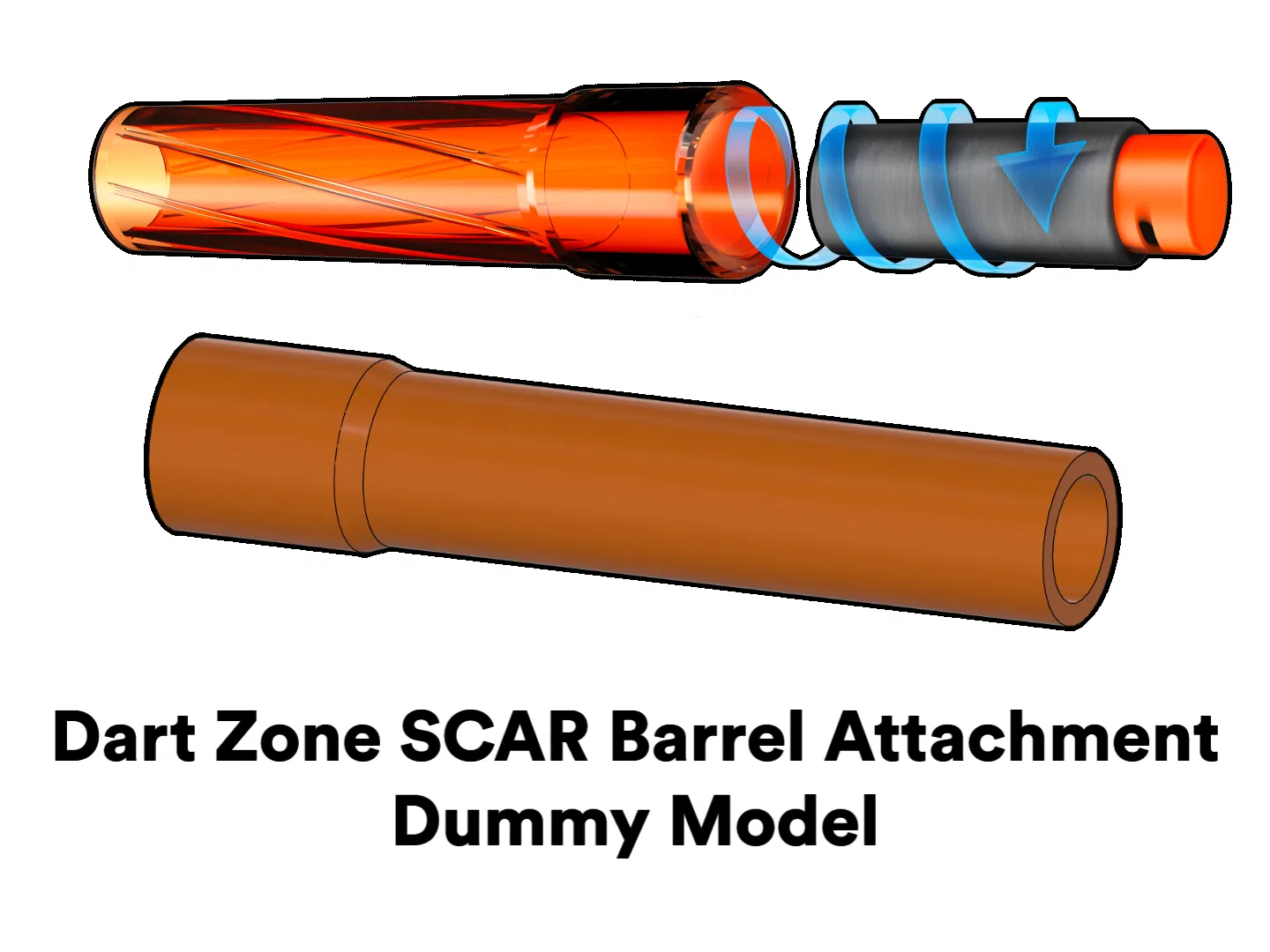 Đây là một mô hình giả (dummy model) chính xác của nòng SCAR Dart Zone, dùng để giúp các nhà thiết kế thêm khoảng hở và dung sai phù hợp cho các thiết kế blaster tự chế của họ.