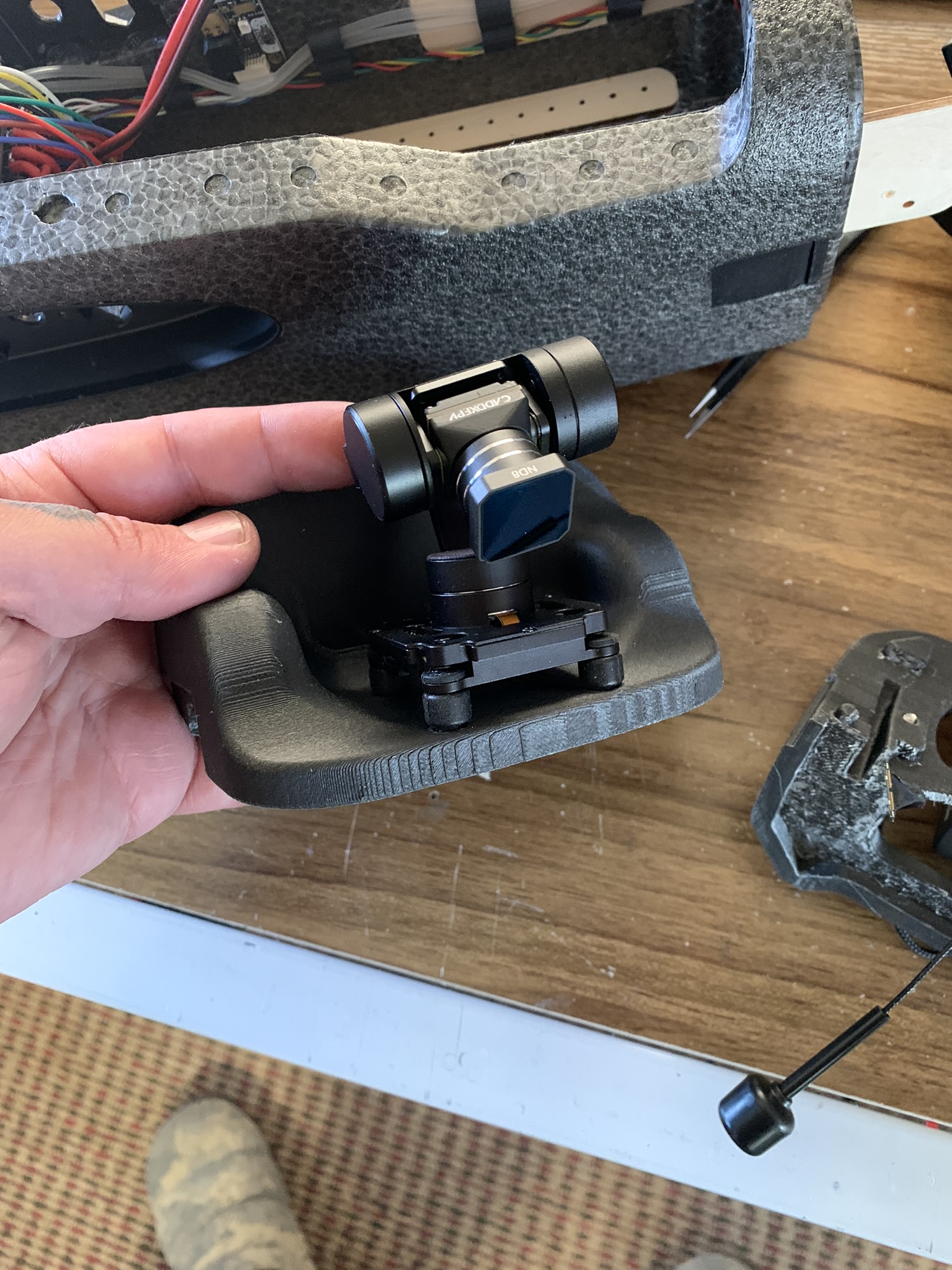 Tôi đã cân nhắc giữa kiểu gắn dưới bụng hoặc gắn trên. Cuối cùng tôi chọn gắn trên để tiện cho việc hạ cánh. Tôi sợ làm hỏng gimbal nếu gắn ở dưới.