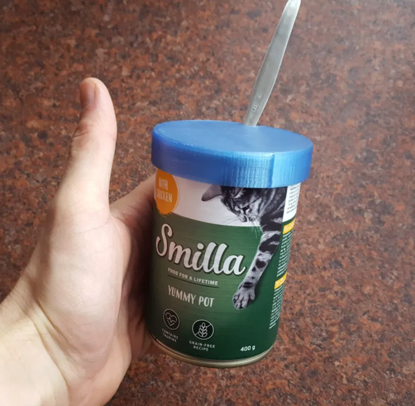 Mô hình nắp đậy lon thức ăn cho chó/mèo bằng PETG này có thiết kế thông minh với lỗ và đi kèm nĩa, có 2 phiên bản để bạn lựa chọn. Rất thích hợp để giữ thức ăn cho thú cưng luôn tươi ngon.