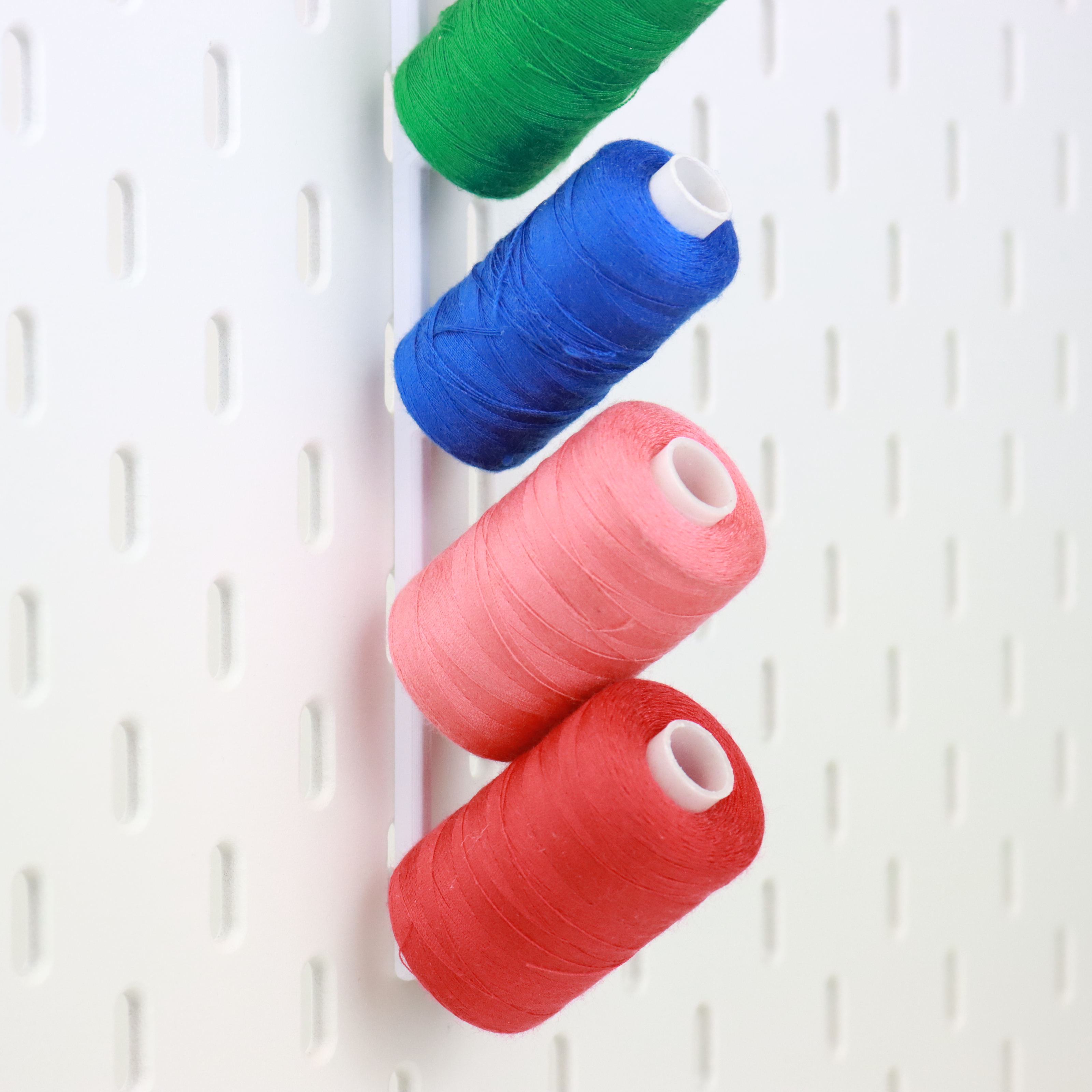 Bỏ kiểu lưu trữ phụ kiện may vá truyền thống trong hộp bánh quy cũ đi, giờ xài cái "giá đỡ chỉ" này cho gọn nè. Giờ bạn có thể dễ dàng sắp xếp các cuộn chỉ theo màu sắc, kích cỡ, vừa đẹp vừa tiện cho góc may vá của mình luôn. Mỗi cái "giá đỡ chỉ" này đựng được tới 5 cuộn chỉ loại "nhỏ" đó nha.
