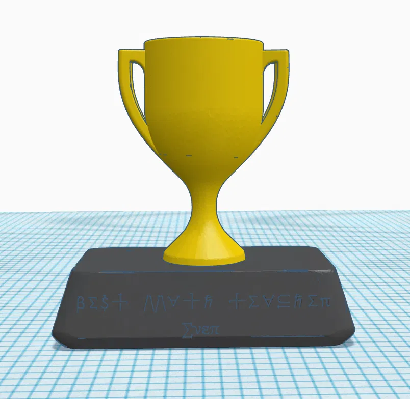 Mô hình giải thưởng này được thiết kế độc đáo, sử dụng các ký hiệu toán học quen thuộc như tổng (∑) và dấu cộng (+) để tạo nên một biểu tượng vinh danh ý nghĩa cho giáo viên toán xuất sắc nhất. Một món quà 3D ấn tượng và đầy sáng tạo.