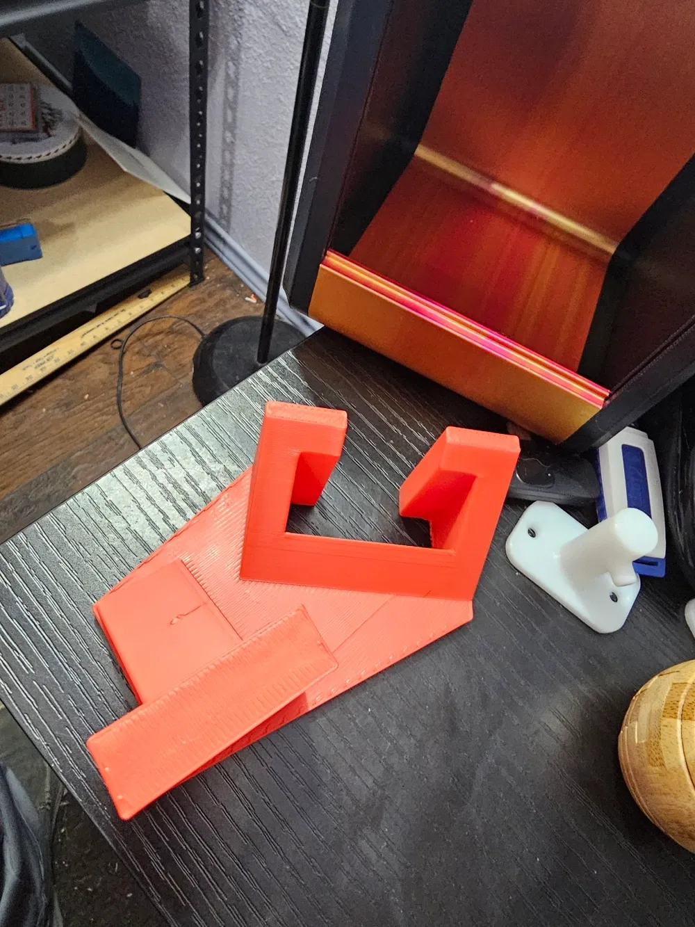 Giá đỡ đơn giản để treo khay in Elegoo Saturn 4 Ultra, giúp nhựa thừa nhỏ giọt xuống.