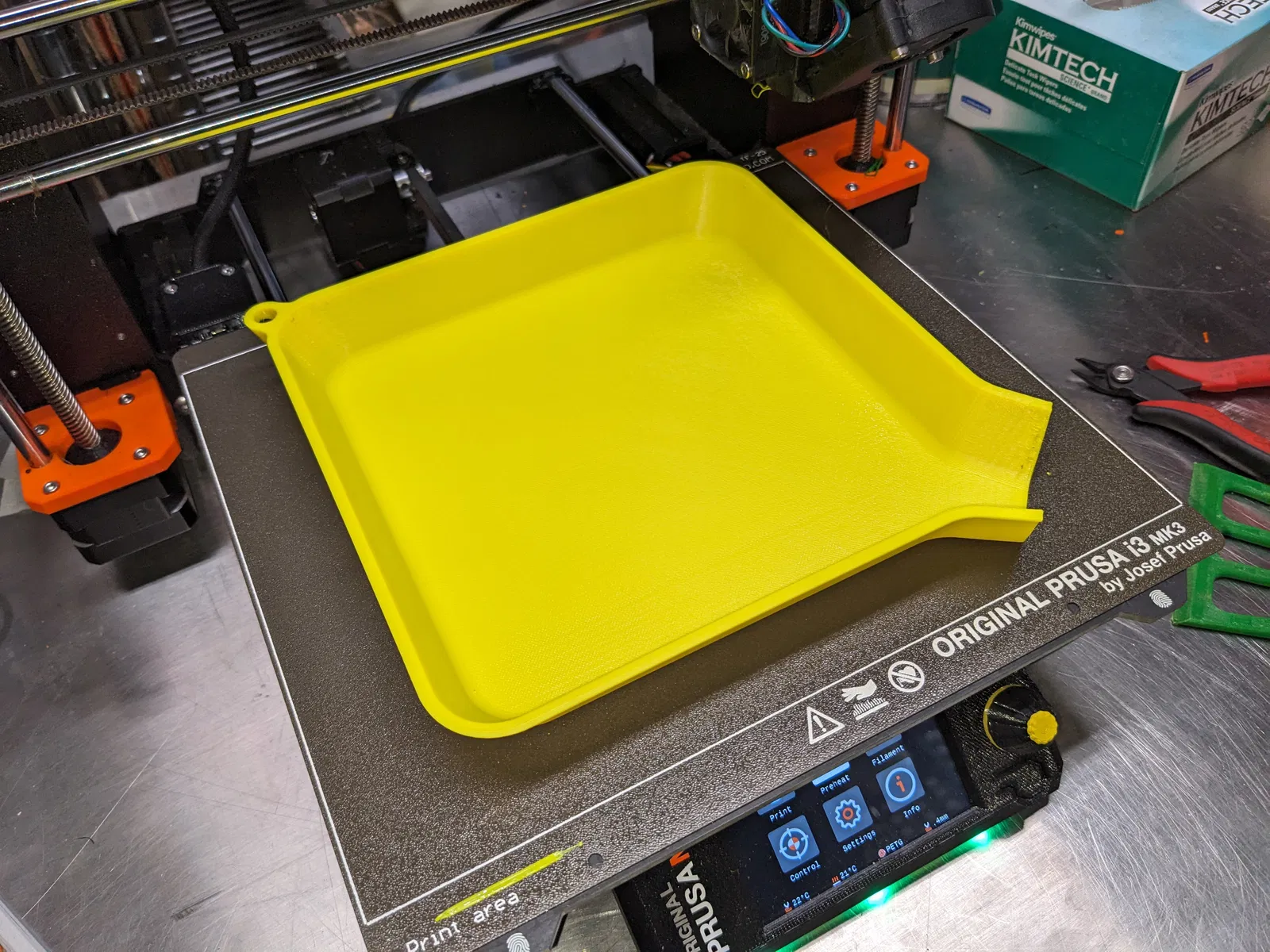 Tôi làm một phiên bản khay có các góc và cạnh bên trong được bo tròn để đồ vật không bị "kẹt" trong các góc. Cái này có hai biến thể - một cái có lỗ treo và một cái không có.