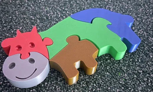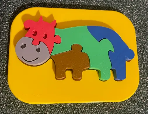 Xếp hình con bò cho bé. Món đồ chơi này giúp các bé rèn luyện kỹ năng vận động tinh, nhận biết hình khối. Các chi tiết khớp nhau đơn giản, dễ lắp ráp. Có thể dùng làm đồ trang trí xinh xắn.