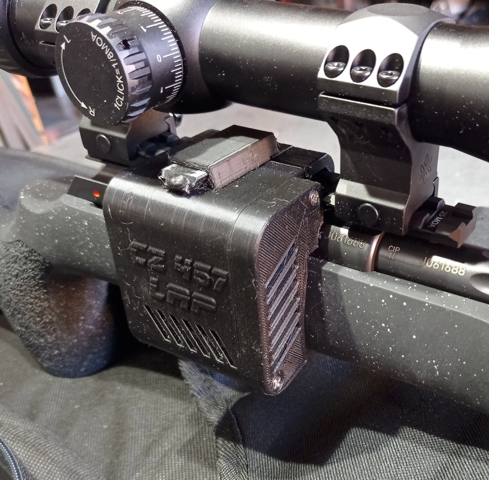 Bộ hứng vỏ đạn cho CZ457 LRP 2 phiên bản, một loại gắn vô là "clip", và một loại có lò xo. Đối với phiên bản có lò xo, bạn cần một cái lò xo nhỏ, và dán (hoặc vặn ốc M2) các bộ phận lại với nhau.