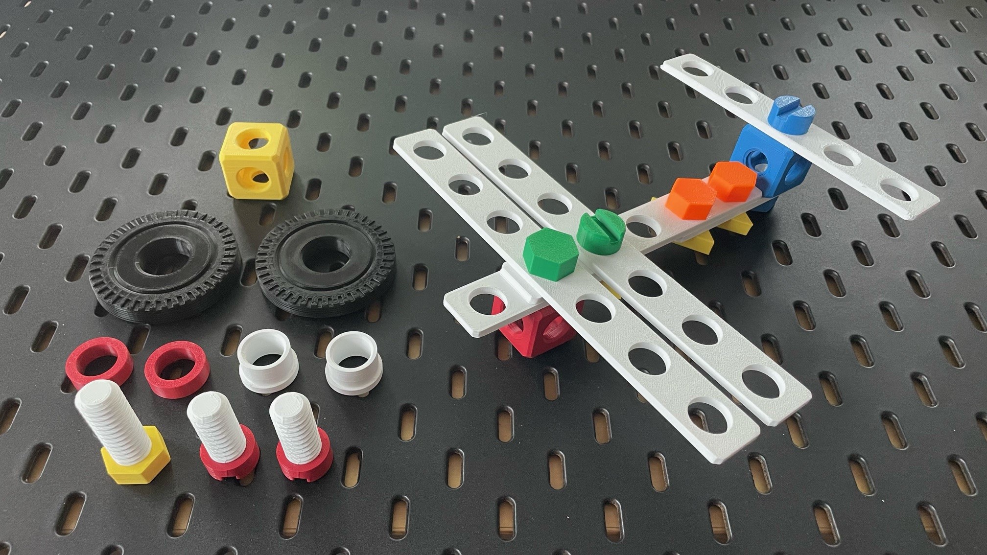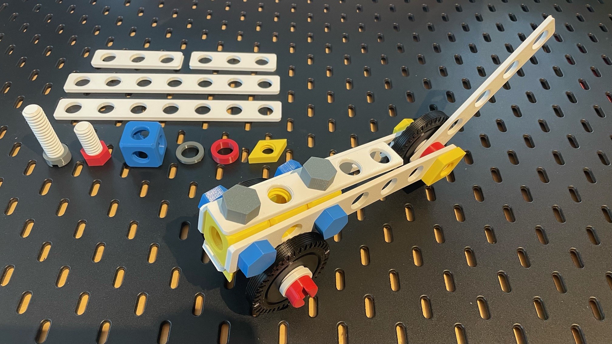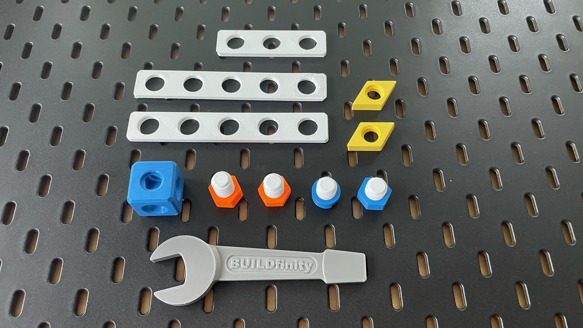 Còn lại thì màu sắc tùy ý nha. Nhưng mà để bắt đầu thì ít nhất nên in mỗi loại chiều dài ốc là 12 cái (6 cái loại đầu tròn rãnh và 6 cái loại đầu lục giác), mỗi loại chiều dài thanh là 6 cái, mỗi kích cỡ tấm là 2 cái và mỗi loại long đền, đai ốc, đầu nối là 10 cái.