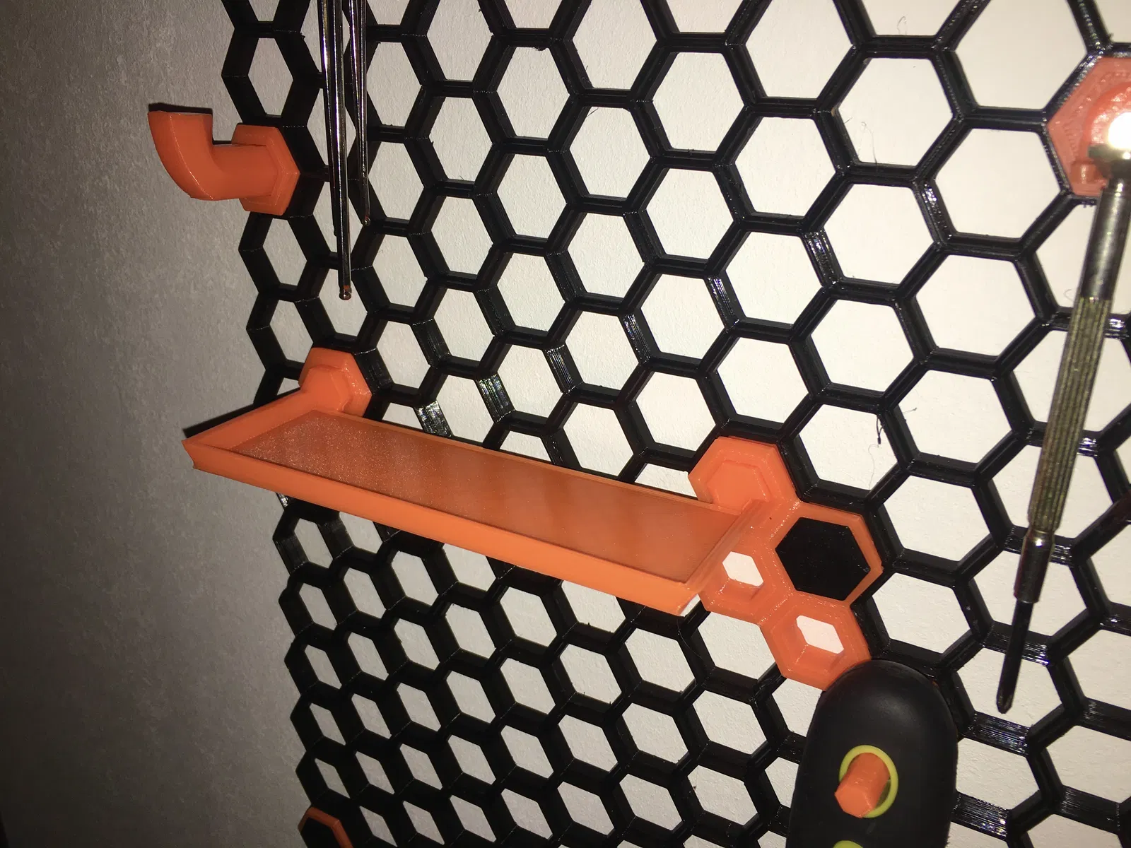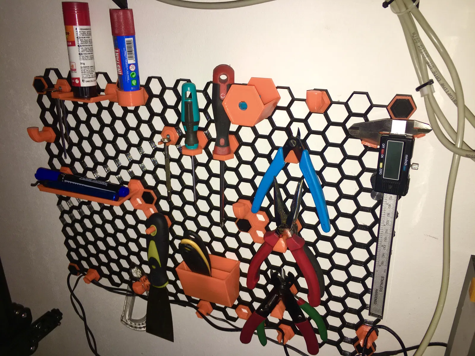 Đây là bản remix kệ tường hình tổ ong, lấy cảm hứng từ file gốc shelf-3.stl của RostaP. Kệ được cải tiến với gờ cao hơn để giữ đồ vật nhỏ không bị rơi. Thông số in ấn chi tiết được cung cấp, sử dụng vật liệu PLA.