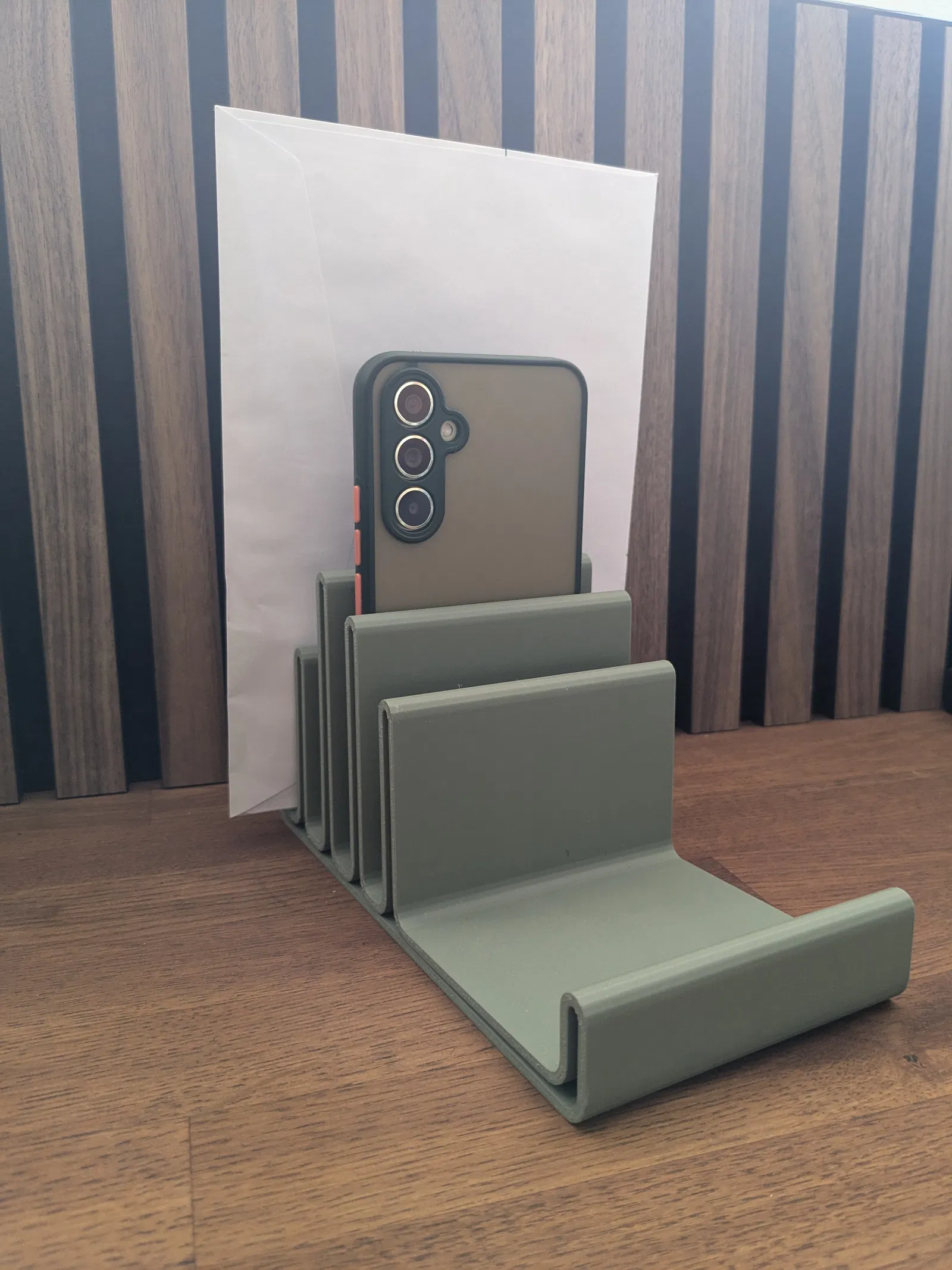 Giải pháp sắp xếp gọn gàng cho bàn làm việc của bạn với kệ đựng đồ đa năng. Có bốn khe để điện thoại, iPad, thư từ và các vật dụng nhỏ khác. Thiết kế hiện đại, phù hợp với mọi không gian. In ngay để bàn làm việc thêm ngăn nắp nhé!