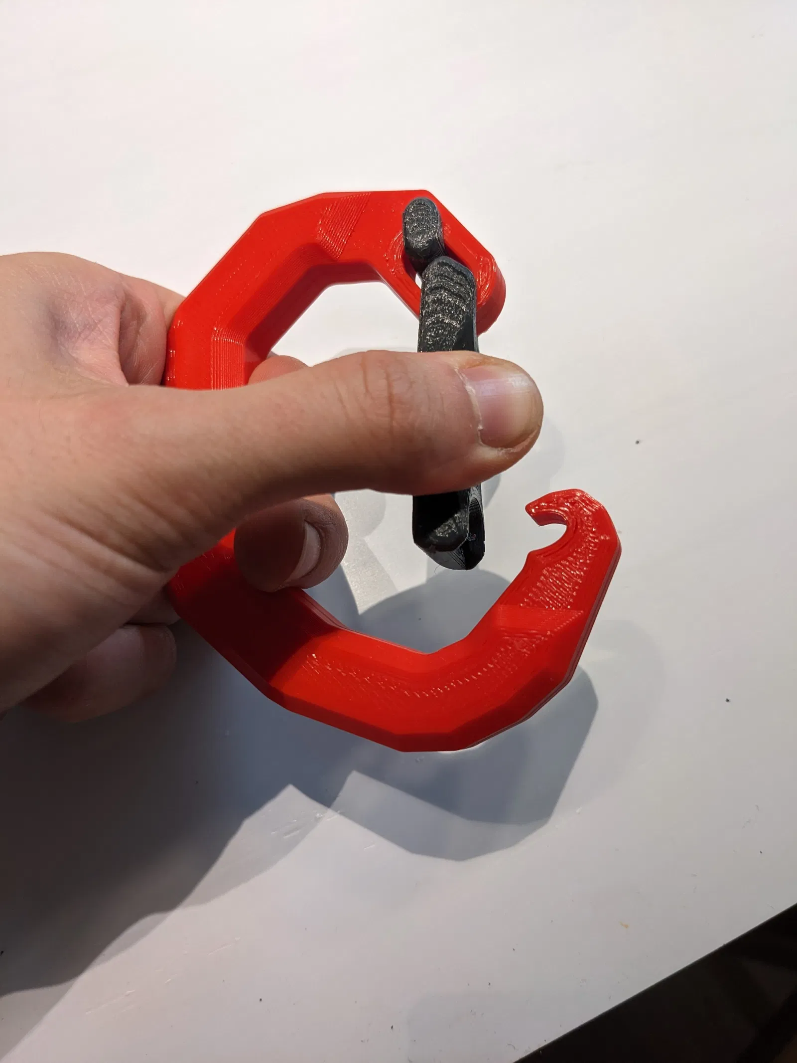 Móc carabiner chắc chắn, tự đóng - bản remix chất lượng. Mẫu được thiết kế lại đối xứng, cầm nắm dễ chịu hơn và loại bỏ các lỗi in.