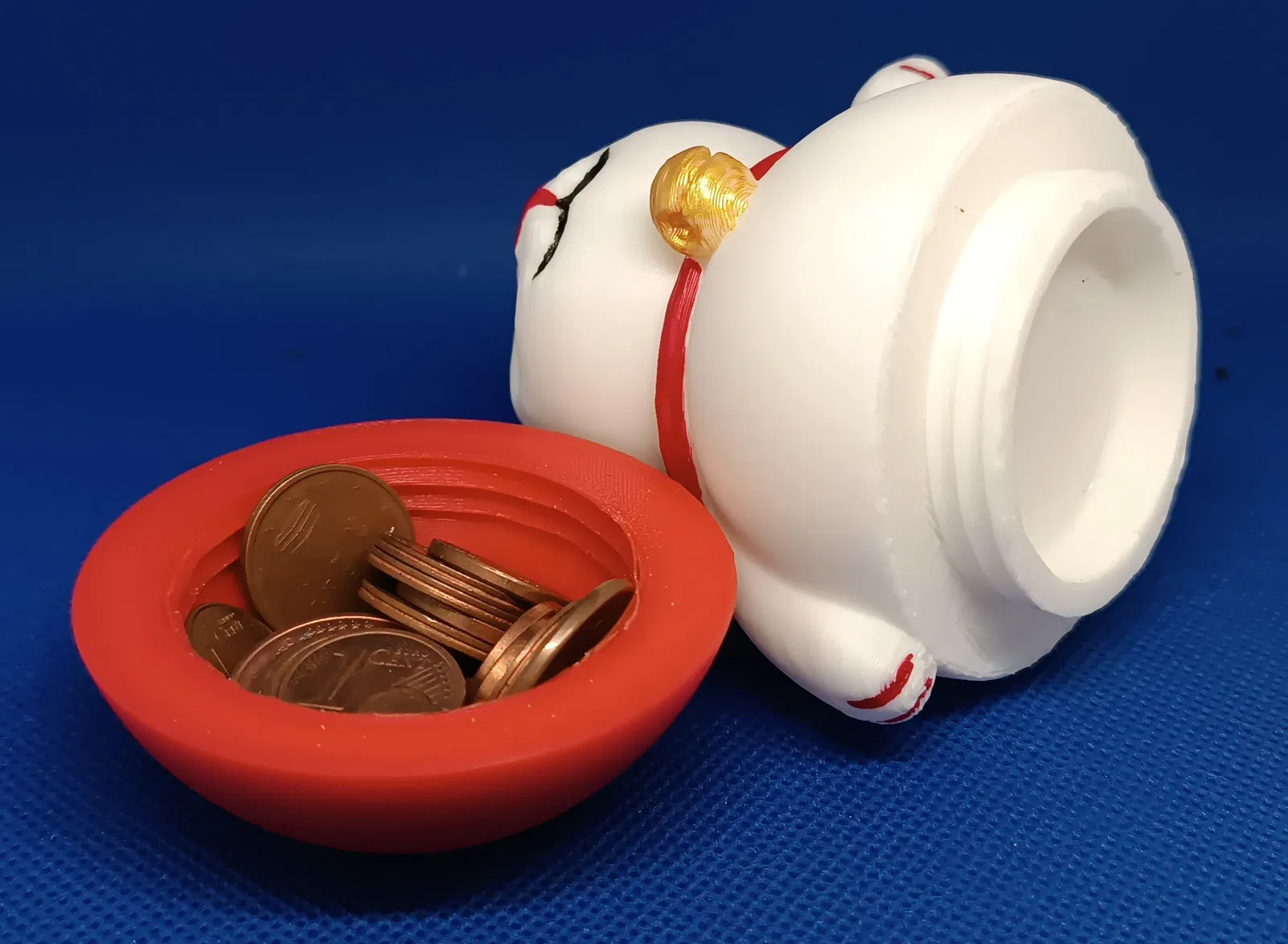 Mèo Thần Tài phiên bản "Weebles Wobble but they don't fall down!". Đồ chơi Weebles, chỉ cần thêm vật nặng như tiền xu vào bên trong để tạo sự cân bằng. Có 2 bộ phận in, dễ dàng tháo lắp.