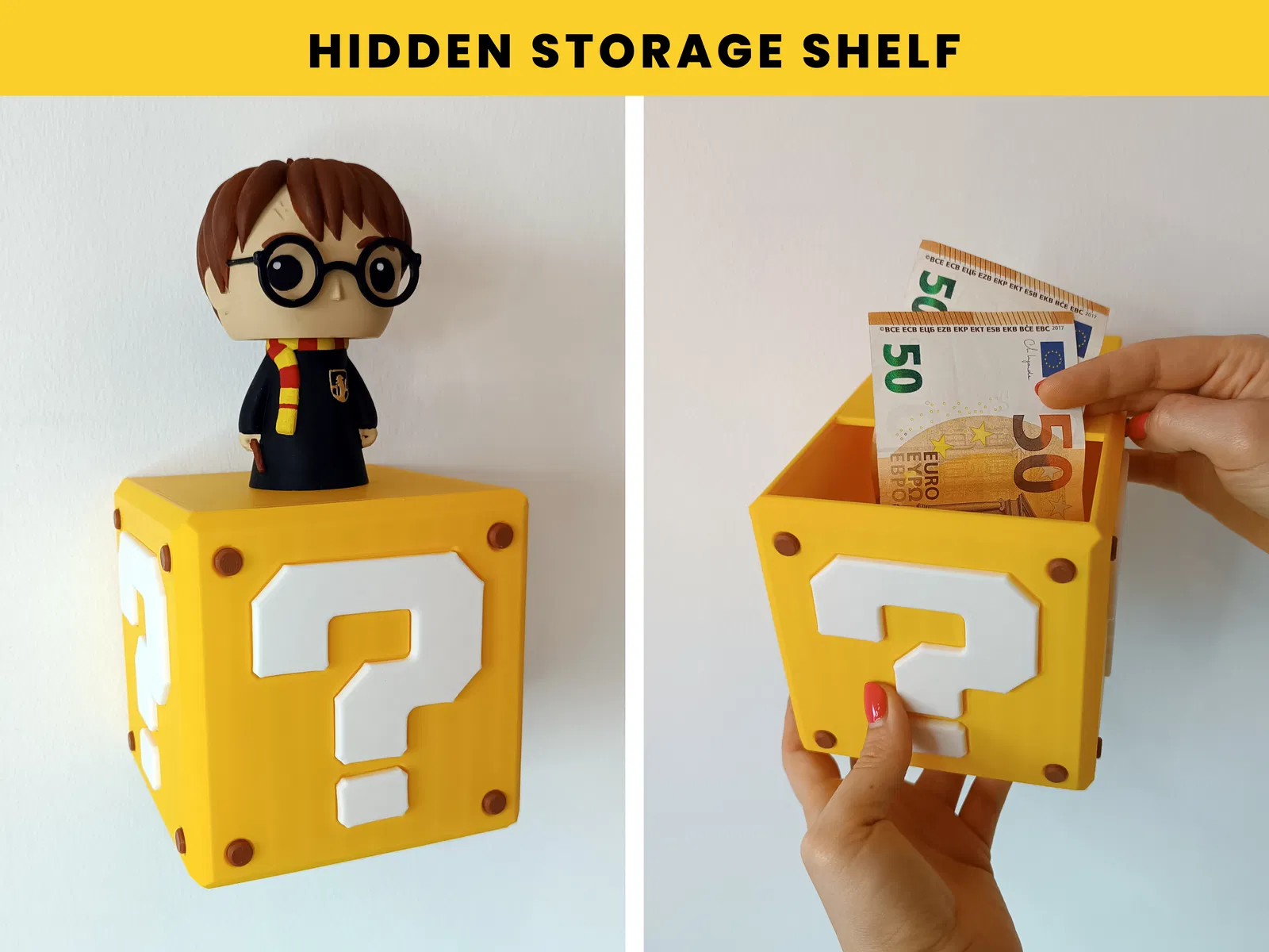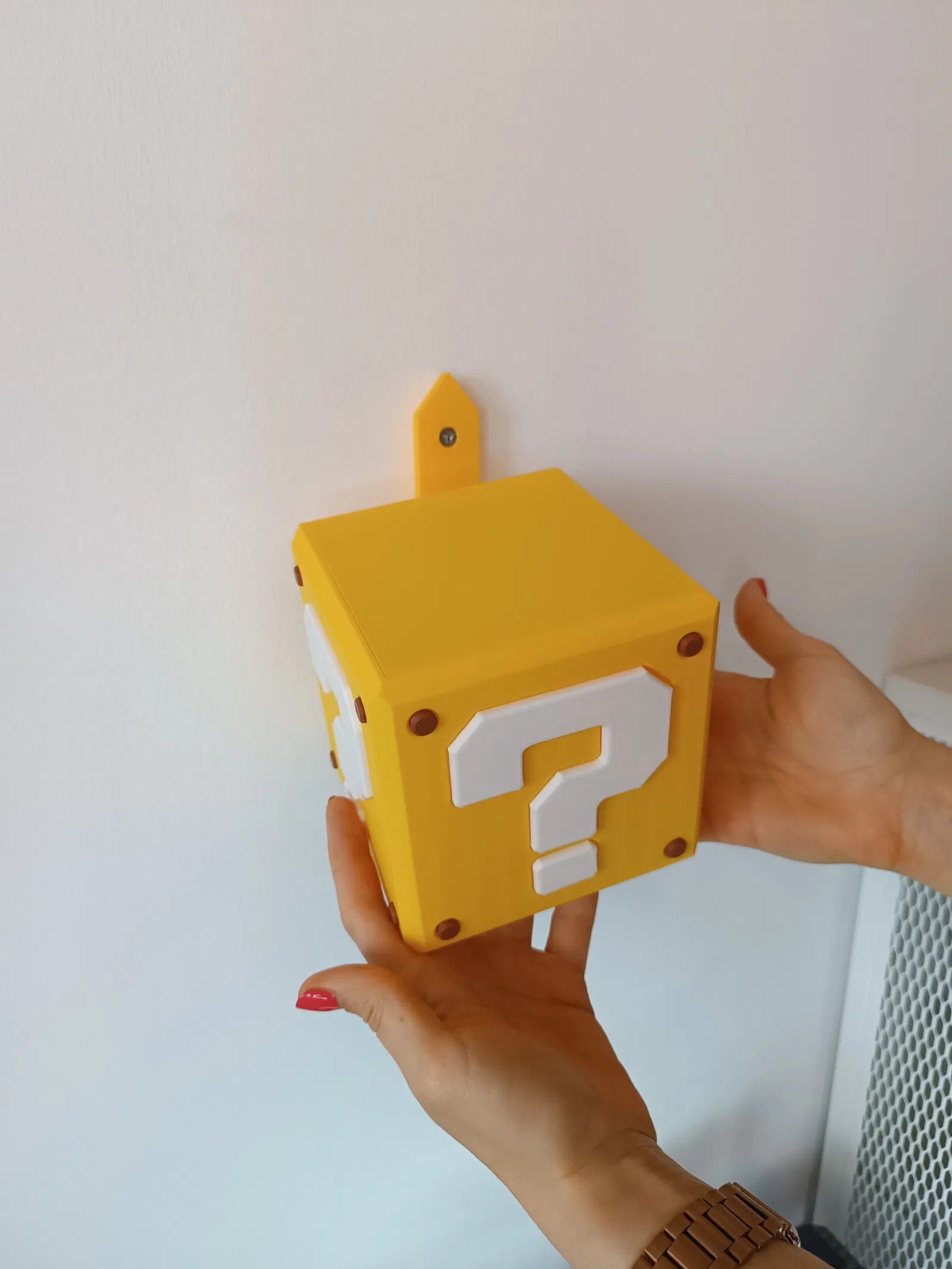 Tìm chỗ an toàn để cất giữ đồ đạc quý giá của bạn với Kệ Cất Đồ Bí Mật Siêu Mario! Mẫu kệ hình khối 16x16x16cm này có một ngăn bí mật để giữ cho đồ của bạn an toàn. Hãy thử in ở tỉ lệ 75% để có kích thước 12x12x12cm!