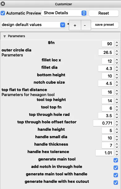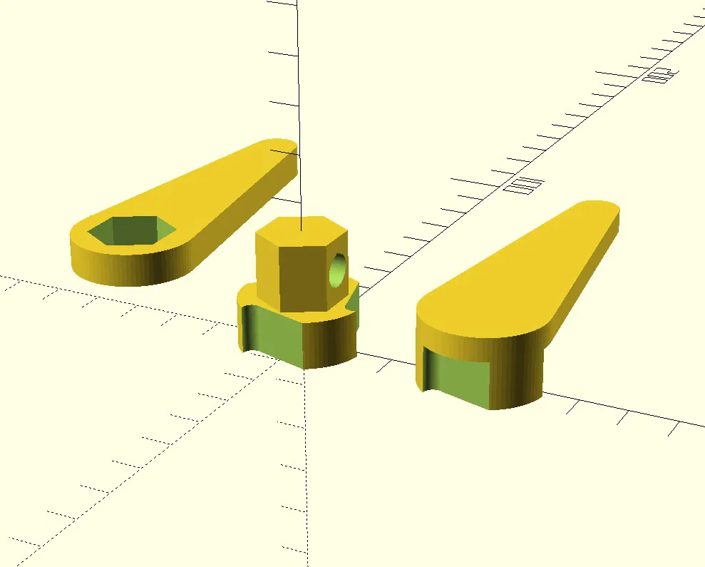 Trong lúc làm lại, tui có thể phác thảo sơ bộ một bản vẽ hình học và tệp JPEG được đính kèm với mẫu này. Xin lưu ý, tui làm cái này cho một người bạn ở chỗ làm có chiếc xe này, nên công sức của tui là tốt nhất có thể. Theo lời bạn ấy nói thì nó hoạt động tốt. Tui có đính kèm tệp OpenSCAD mà tui đã dùng để tạo ra tệp STL. ChatGPT đã hỗ trợ tạo script OpenSCAD này. Mặc dù vậy, nó chủ yếu được dùng để làm cho code đẹp hơn và nó đã chứng tỏ là khá hữu ích.
