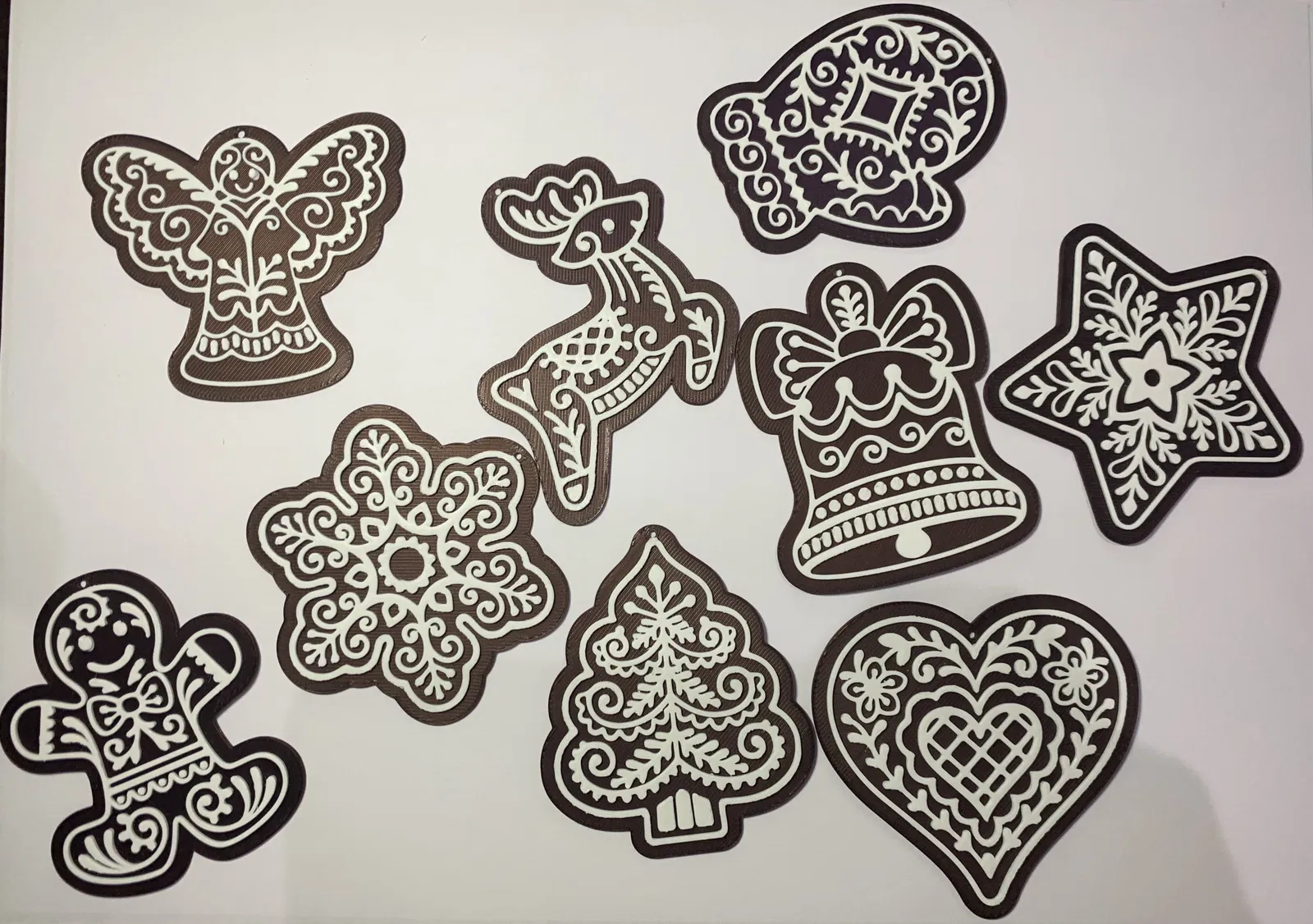 Đây là một món đồ trang trí dùng để tô điểm thêm cho không khí Giáng Sinh ấm áp. Ai cũng có thể tự làm và tận hưởng món đồ trang trí này! Bộ bánh gừng Giáng Sinh này bao gồm các hình như ngôi sao, tuần lộc, xe trượt tuyết, trái tim, chuông, bông tuyết, găng tay, thiên thần, và bánh gừng, có thể in bằng máy in 3D tiêu chuẩn. Nhớ xem hướng dẫn in trước khi bắt đầu.
