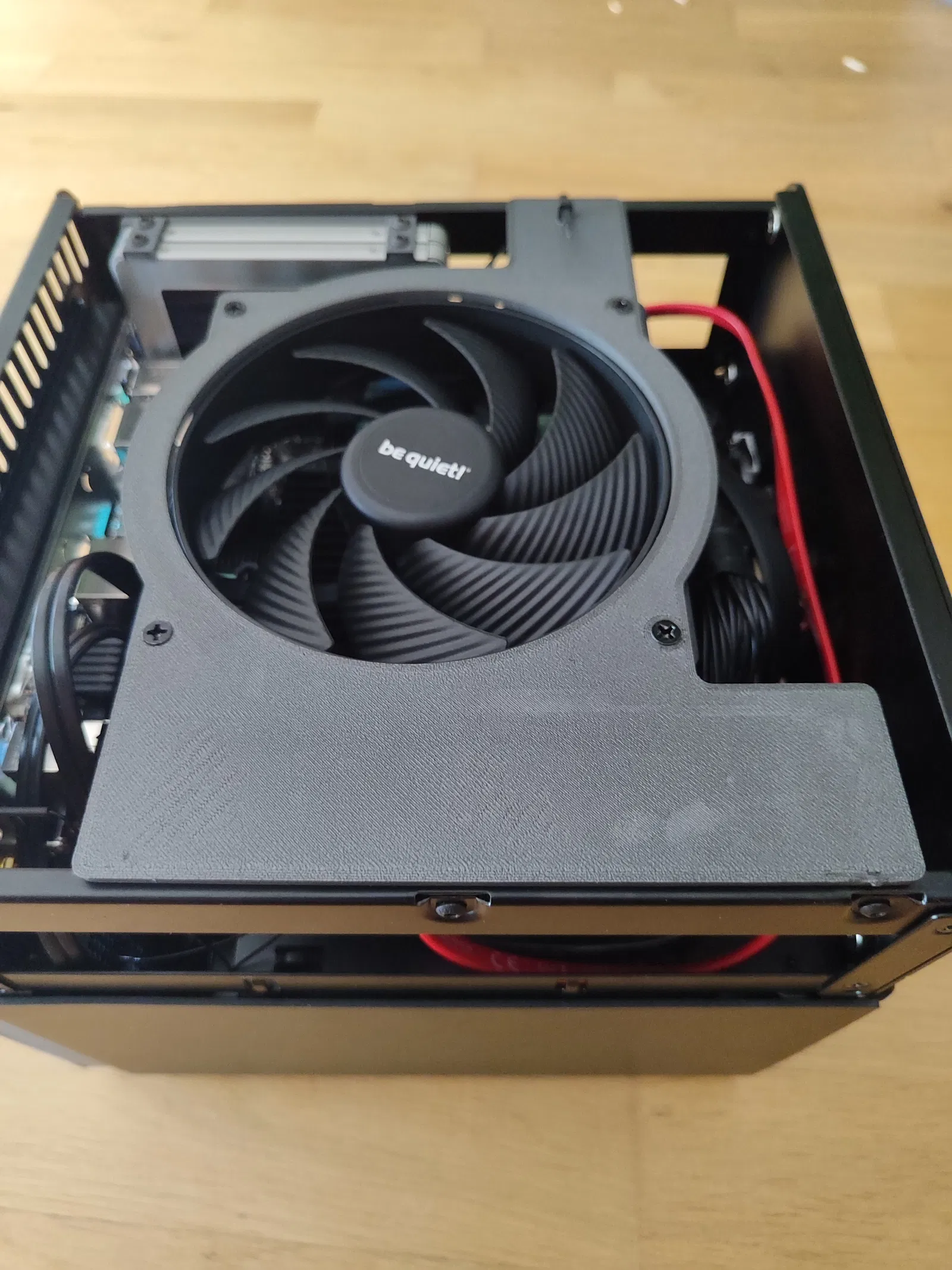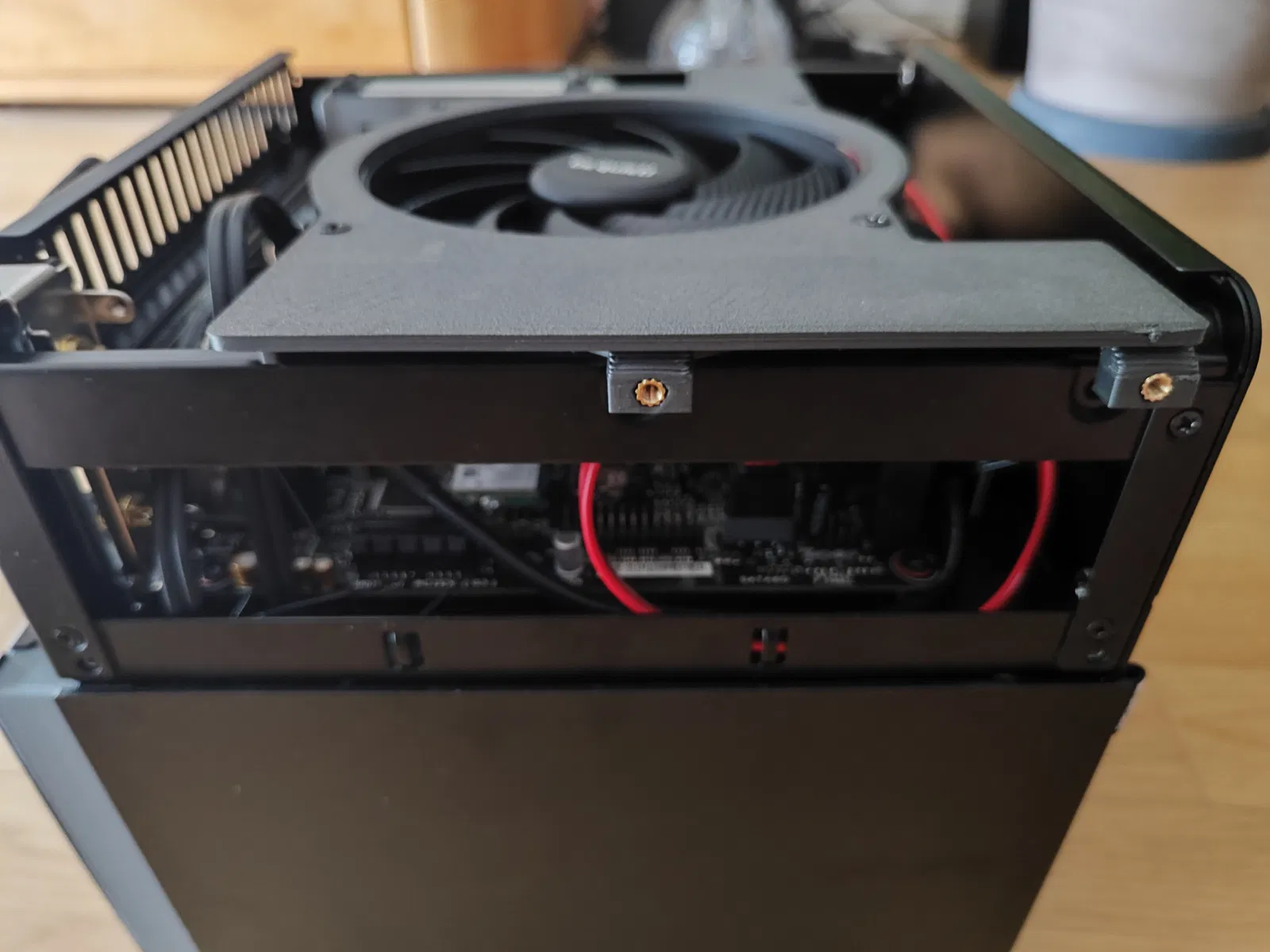 Cái vỏ máy Jonsbo N2 nhìn cưng lắm mà hổng có chỗ gắn quạt. Với cái đế này, bạn có thể gắn thêm quạt 120mm để tản nhiệt tốt hơn cho CPU, dễ dàng lắm luôn. Cần ốc M3 heat set inserts và dây rút để cố định thêm nha.