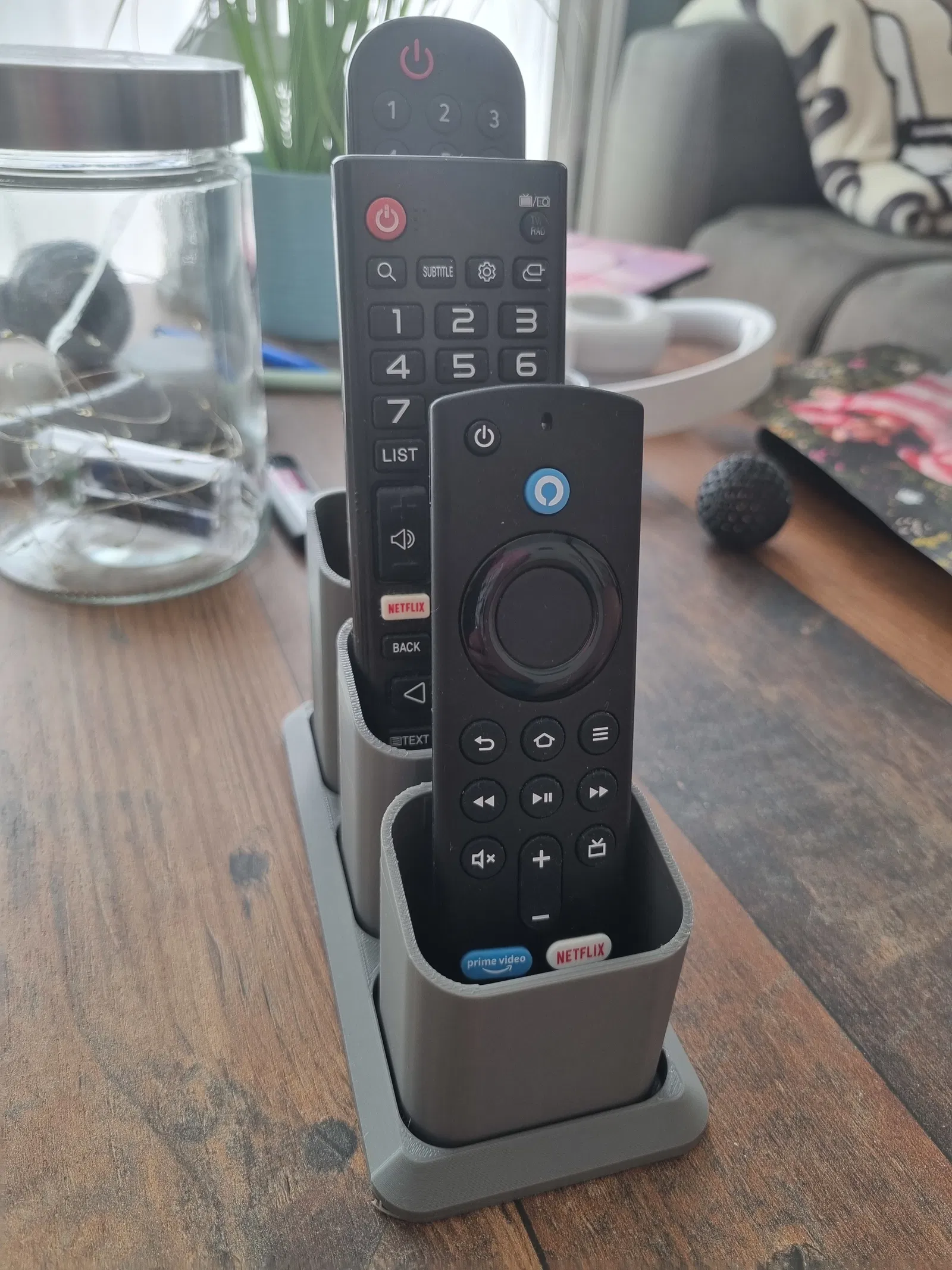 Cái kệ đựng remote này được thiết kế để giữ nhiều remote gọn gàng trong một không gian nhỏ. Sản xuất bằng công nghệ in 3D, thiết kế này mang lại vẻ ngoài hiện đại và tiện dụng.