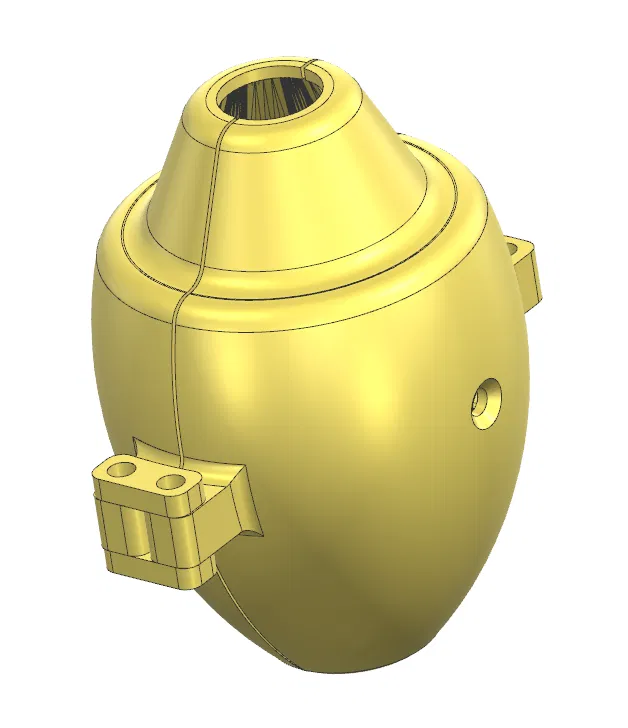 Thiết kế gồm một bộ khuôn chia đôi, hình dáng giống hệt nhau để dễ in hơn và/hoặc thay thế (nếu cần).