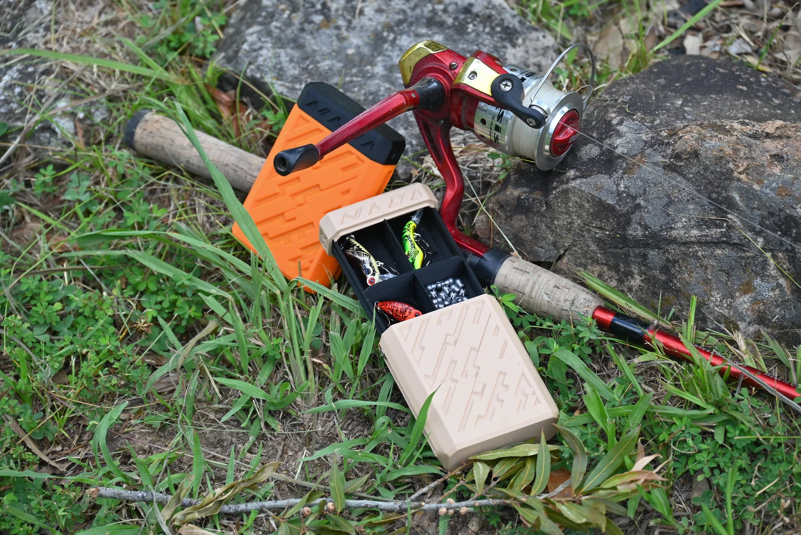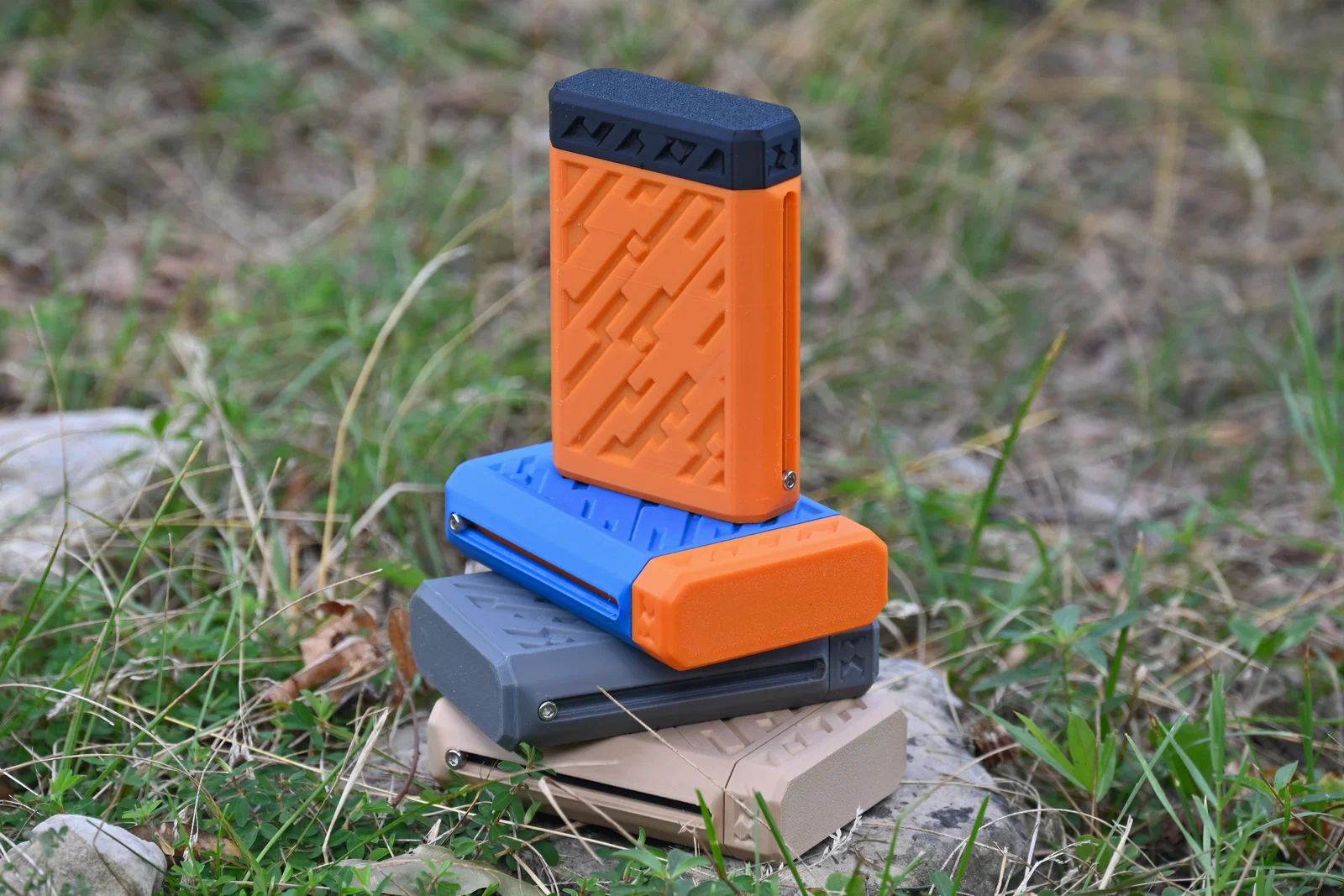 Cái hộp này in ra làm ba phần; Vỏ ngoài (Outer Shell), Nắp khay (Tray Cap) và cái Khay (Tray) với tùy chọn khay có ngăn hoặc khay trống. Trong một trong những hình ảnh, tôi có một mẫu thử nghiệm gồm bốn khay trong cái hộp màu cam, chạy ngang nhưng điều này cản trở việc tiếp cận các ngăn ở hai đầu, vì vậy thiết kế bốn ngăn là thiết kế cuối cùng và hoạt động tốt hơn nhiều. Để lắp ráp, cái khay sẽ gắn vào nắp ở hai đầu, không cần keo trừ khi muốn. Sau đó, (2) con vít M3 đầu chìm dài 6mm sẽ được vặn qua các khe ở bên ngoài và vào lỗ trên cái khay. Đừng vặn quá chặt vì lúc đó khay sẽ không trượt được.