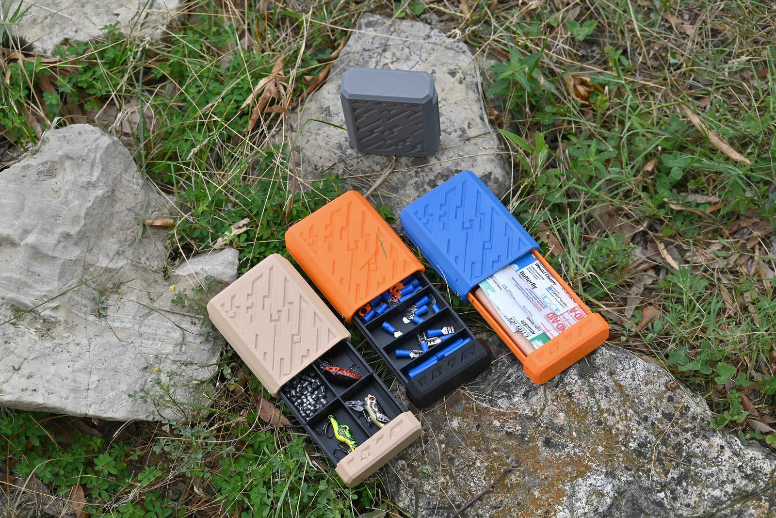 Cái hộp này được thiết kế như một cái hộp nhỏ để nhét vừa túi áo, mở ra bằng cách trượt để lộ ra một không gian có kích thước bằng một lá bài tây. Nó có lẫy ở vị trí đóng hoàn toàn, và lại có lẫy ở vị trí mở hoàn toàn. Một cái gờ nhỏ trên nắp chỉ ra hướng nào nên để ngửa khi mở hộp. Hoàn hảo để giữ một mớ đồ linh tinh nhỏ trong túi, hoặc một bộ dụng cụ y tế nhỏ, cái hộp này là để mang theo bên người, hoặc dễ dàng lấy ra từ trong ba lô.