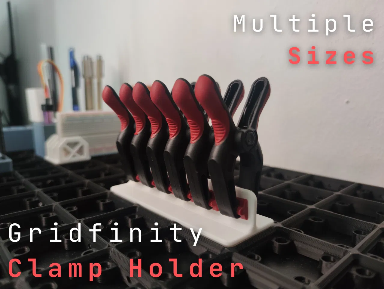 Bộ sưu tập Kẹp Giữ Gridfinity đơn giản với các kích thước từ 1x1 đến 1x10. Phiên bản 1x3 giữ được 6 kẹp, 1x4 giữ được 8 kẹp. Chỉ có phiên bản 1x3 được in và thử nghiệm.