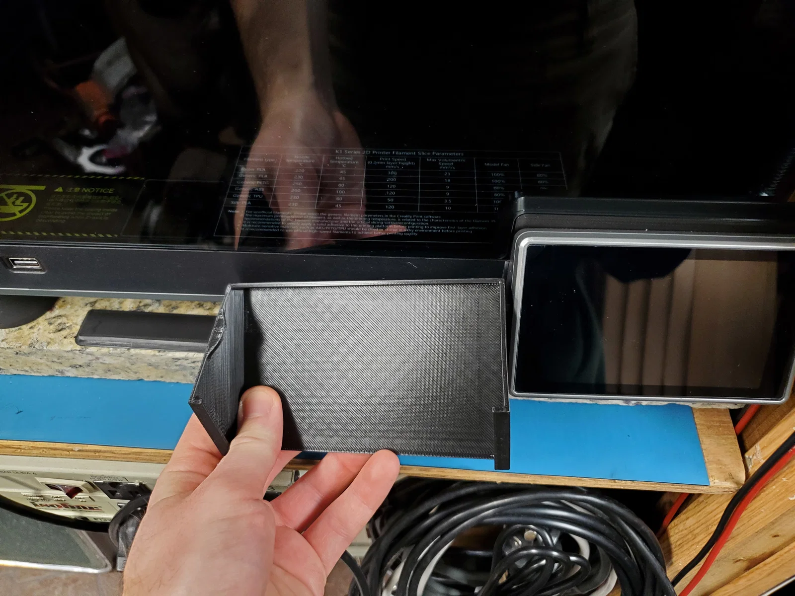 Đây là một vỏ che màn hình LCD dạng kẹp cho máy Creality K1 Max để bạn không vô tình làm hỏng màn hình. Cái này là quá chuẩn cho mấy bạn hậu đậu hay mấy phòng thí nghiệm cá nhân chật hẹp. Không còn lo rớt mấy cục nhôm hay đồng lên màn hình LCD quý giá hay lỡ tay quơ phải cây chổi nữa. Nó kẹp vào ngon lành và không bị rơi ra dễ dàng. Nó ngăn cửa chính mở ra, nhưng tui thấy cái này hay hơn là dở.