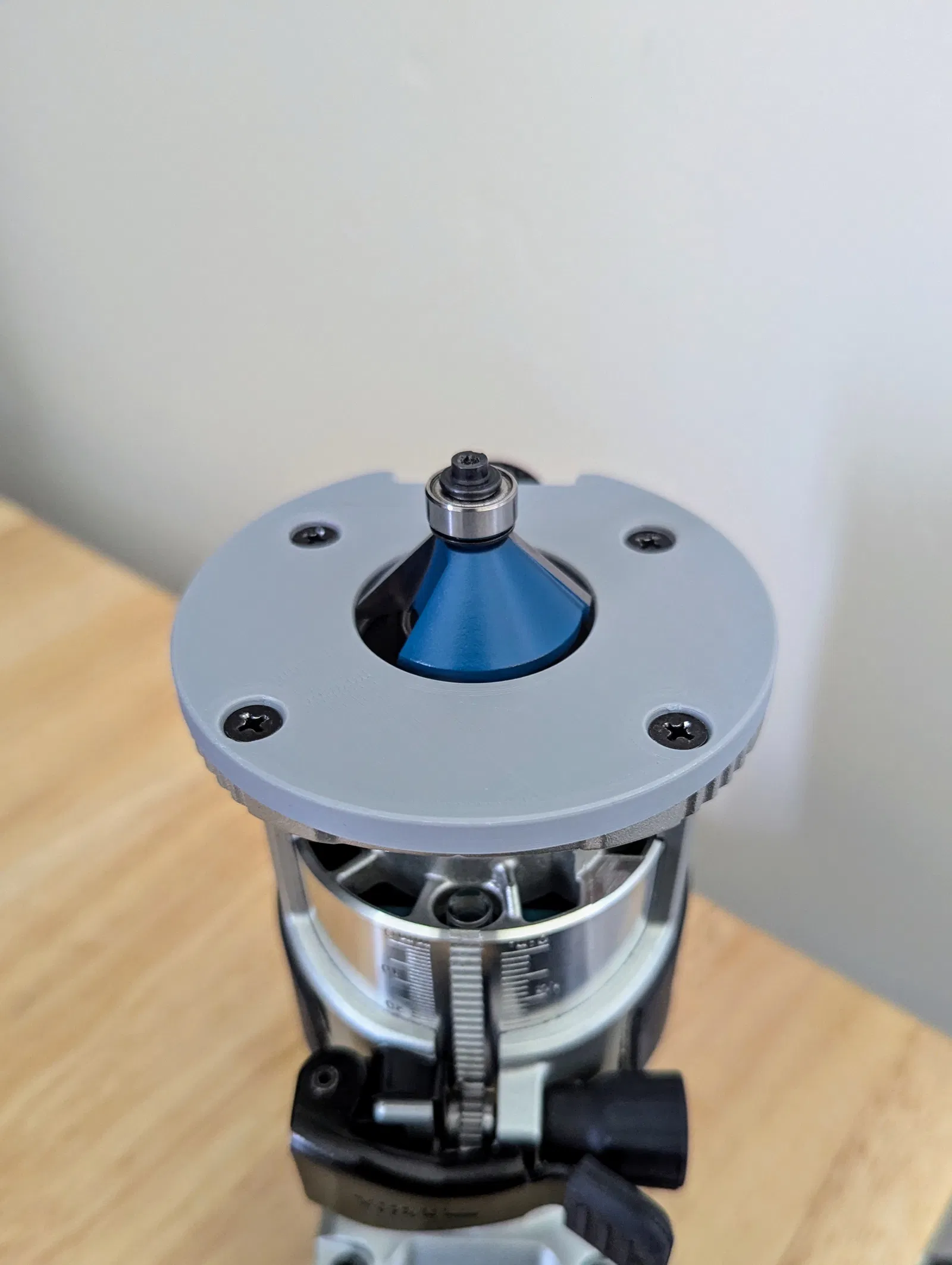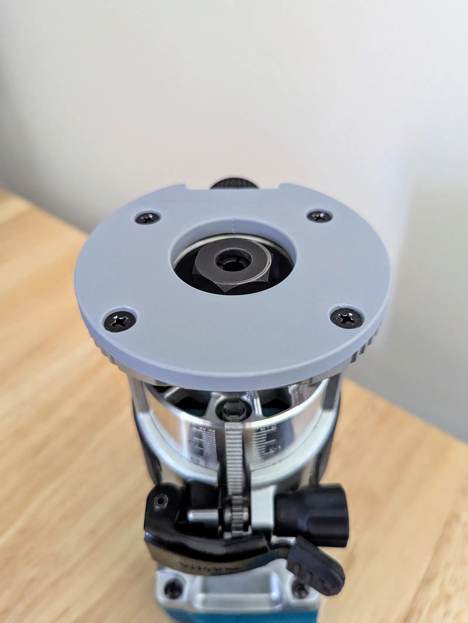 Đế thay thế cho máy router Makita, loại bỏ phần gờ cản trở việc sử dụng các mũi khoan lớn hơn. Sản phẩm này được in bằng PLA, tối ưu cho việc sử dụng mũi khoan lớn mà không gặp vấn đề. Khuyến khích in úp mặt phẳng và tránh vật liệu PETG hoặc sợi carbon.