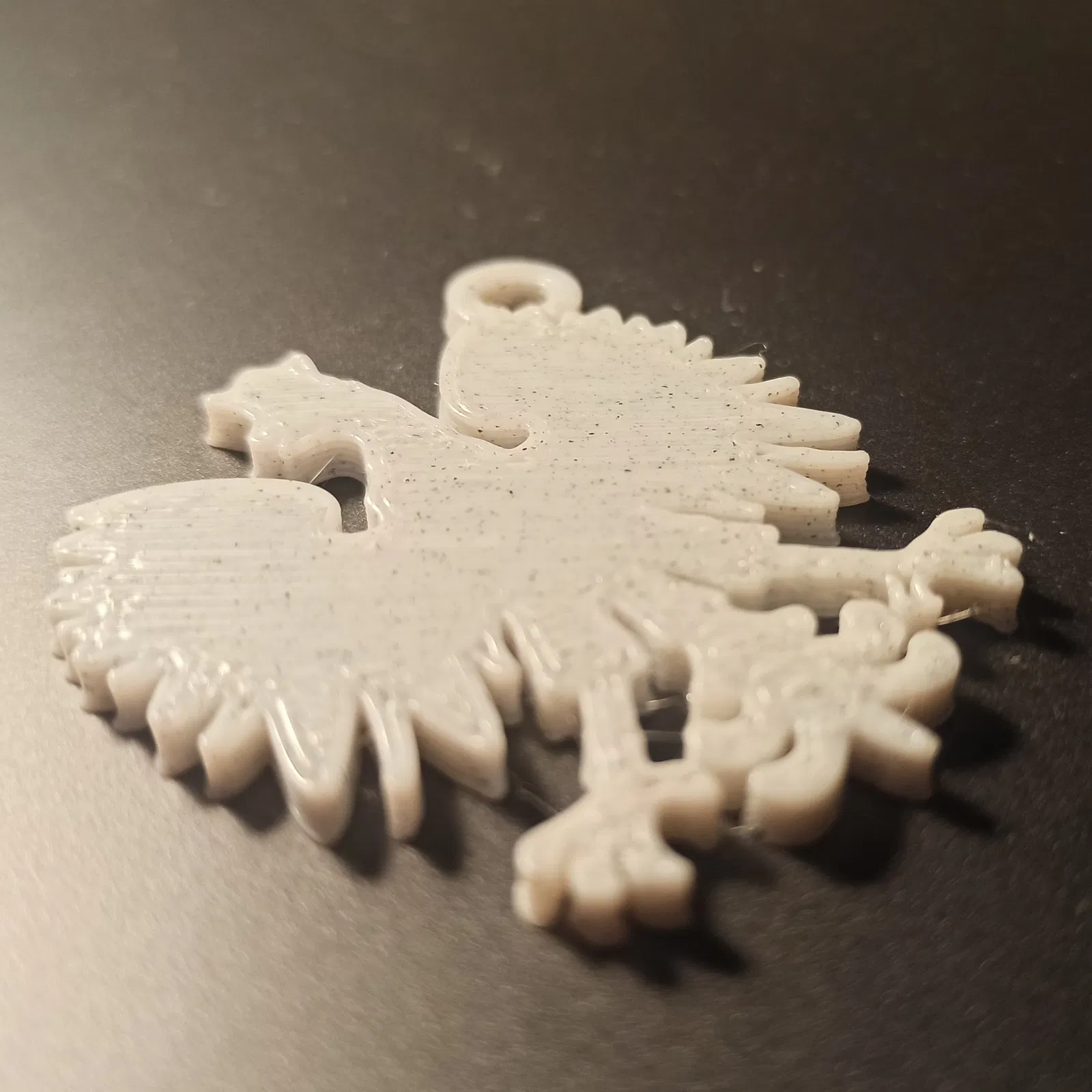 Tui không tìm được cái mô hình 3D nào của cái móc khóa hình đại bàng trắng của Ba Lan hết, nên tui tự làm cái của mình luôn. Dĩ nhiên là xài dây tóc màu trắng là đẹp nhất rồi.