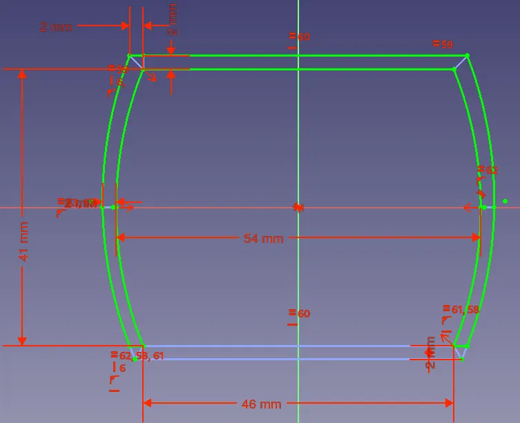- Cái đế rộng 54 mm ở điểm rộng nhất và 46 mm ở hai đầu trên dưới. Chiều cao là 41 mm và chiều sâu là 20 mm.