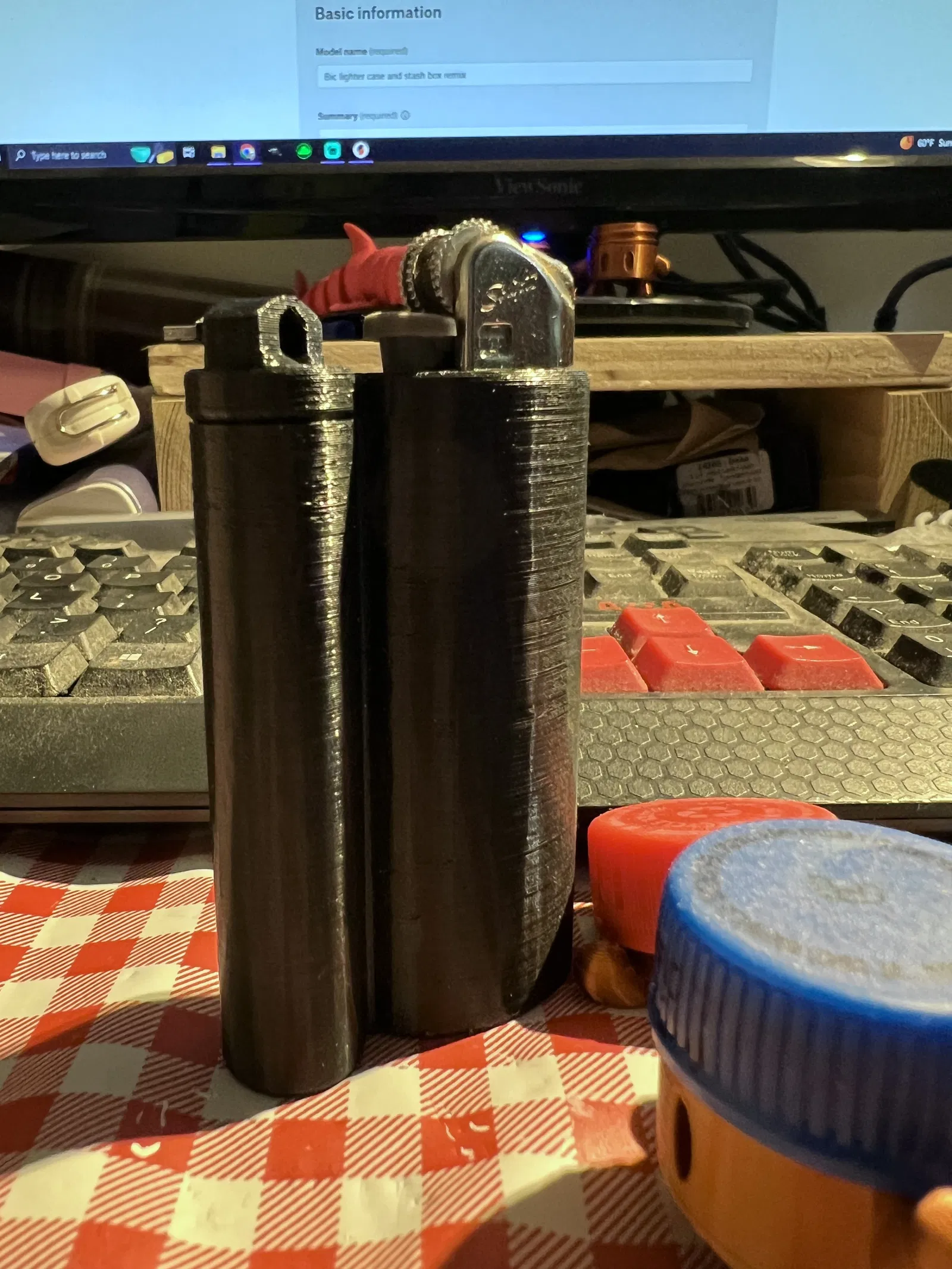 Tôi đã chỉnh sửa hộp đựng bật lửa Bic nhỏ gọn này mà tôi tìm thấy trên Thingiverse để phù hợp với mình hơn. Tôi đã thêm một phần cắt vát ở đáy hộp để có thể đẩy bật lửa ra. (Ngoài ra, tôi biết bật lửa trong hình là loại Scripto, vừa khít, nhưng nó được thiết kế để vừa hoàn hảo với bật lửa Bic tiêu chuẩn.)