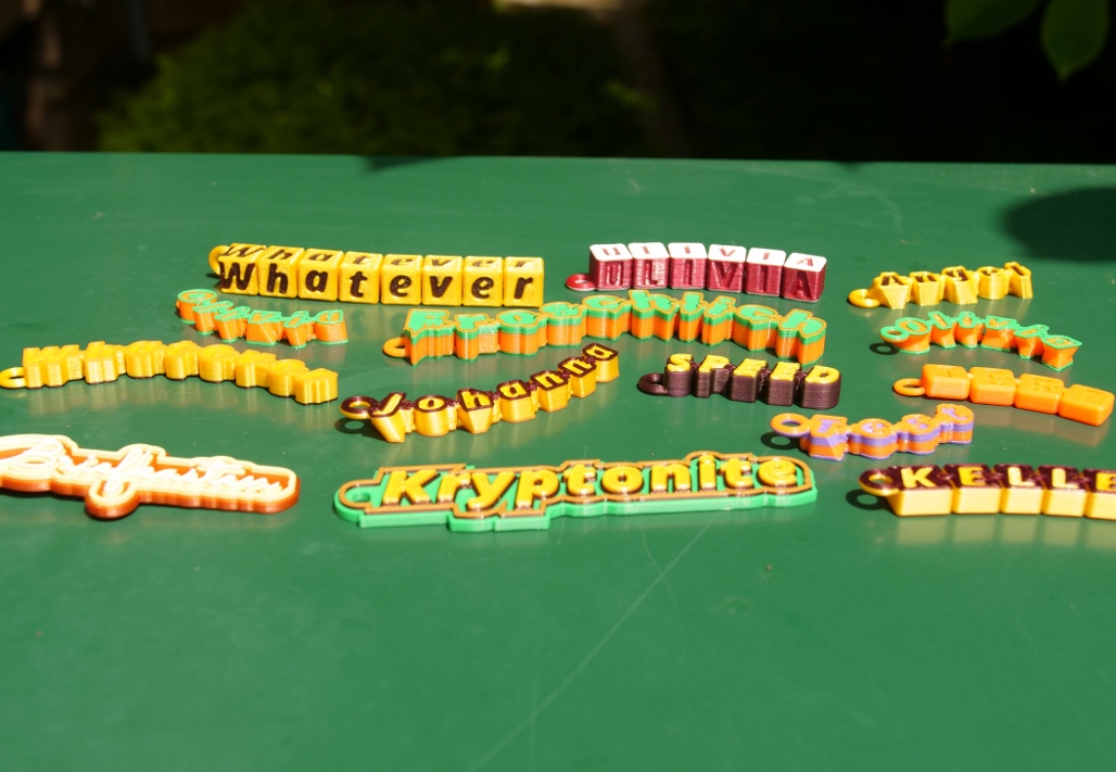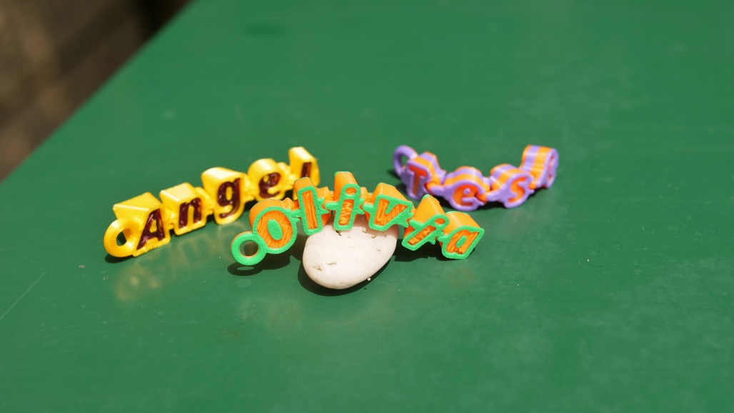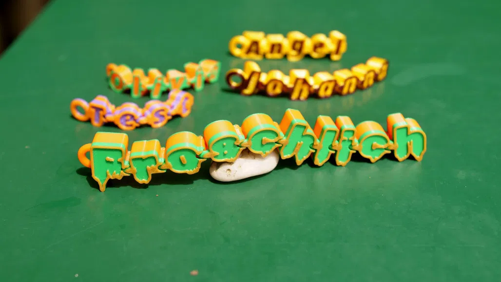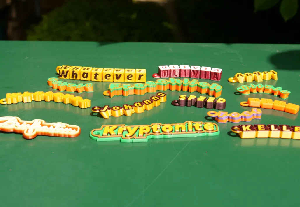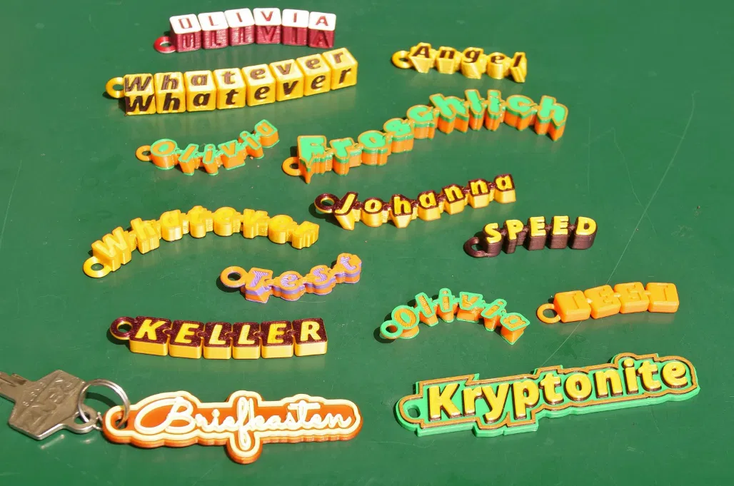 Móc khóa có tên của bạn hoặc tên người thân/bạn bè, viết bằng các hạt chữ cái riêng lẻ hoặc dạng tag cứng cáp. Các hạt được nối với nhau một cách linh hoạt bằng các vòng và di chuyển sau khi in. Nó cũng rất hay để nghịch ngợm. Lưu ý rằng mô hình này được in luôn, nên không cần vật liệu hỗ trợ.