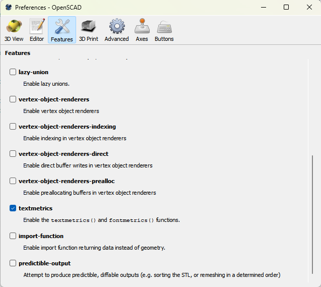 - cài đặt phiên bản snapshot phát triển mới nhất của OpenSCAD trên máy tính của bạn