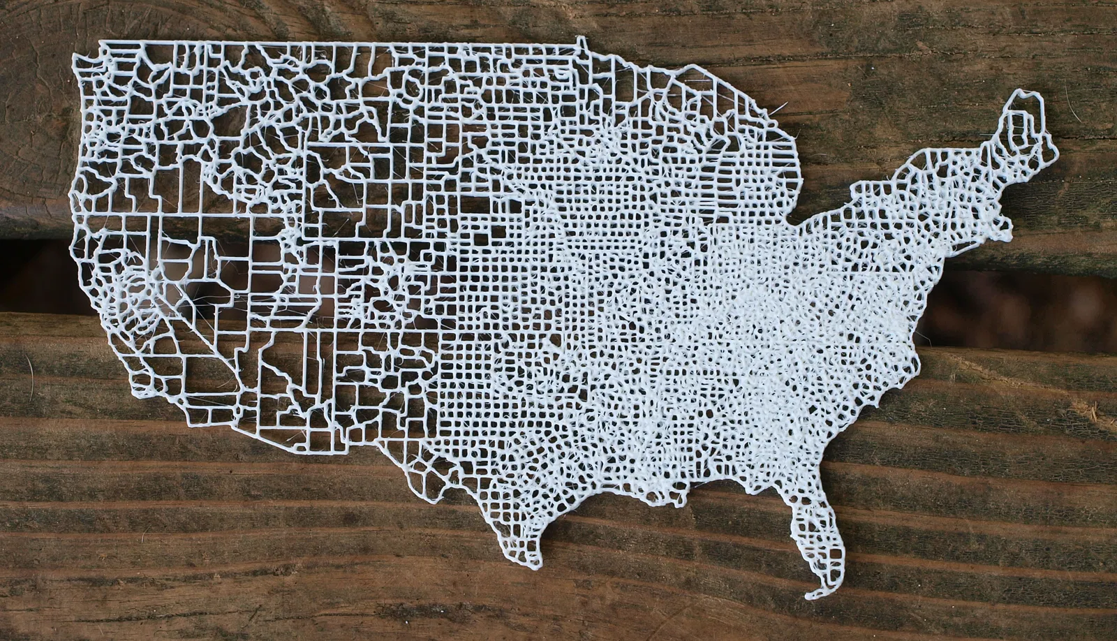 Bản vẽ các đường viền ranh giới của tất cả các quận hạt thuộc lục địa Hoa Kỳ. Tối ưu hóa cho nhiều kích thước in khác nhau, với các lưu ý về cài đặt đầu phun và kích thước để có kết quả tốt nhất.