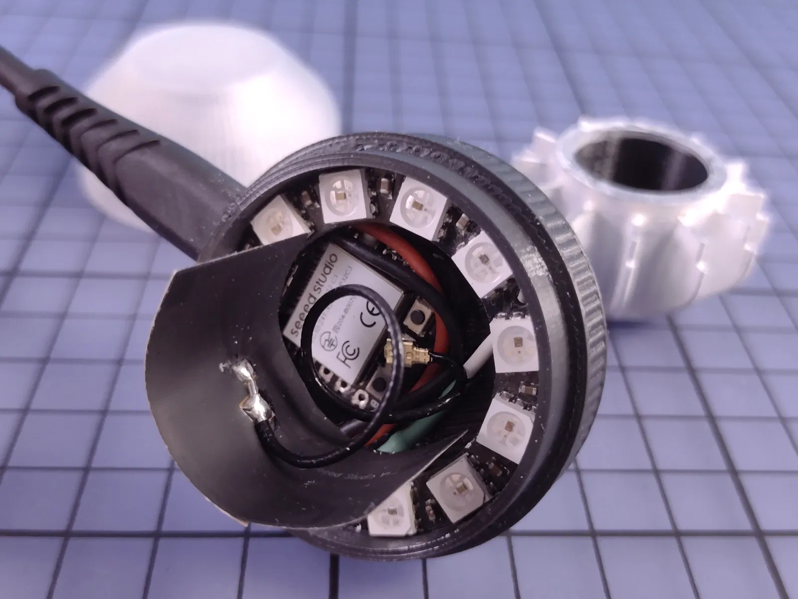 Seeed có ăng-ten u.FL ngoài linh hoạt được cuộn bên trong bộ chia LED. Cái này có thể hỗ trợ ăng-ten phạm vi xa hơn, có thể hữu ích với giá treo tường ngoài trời