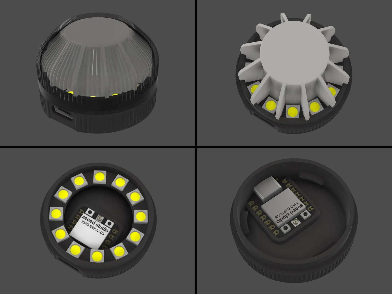 Mô hình đèn báo WLED v1.2 cho Home Assistant, dùng nguồn USB-C, đường kính 45mm. Yêu cầu PETG hoặc vật liệu chịu nhiệt tốt hơn. Hướng dẫn chi tiết về lắp đặt, vật liệu và tùy chọn giá treo tường. Hỗ trợ bộ điều khiển ESP32 C3 hoặc SuperMini, tương thích WLED hoặc ESPHome.