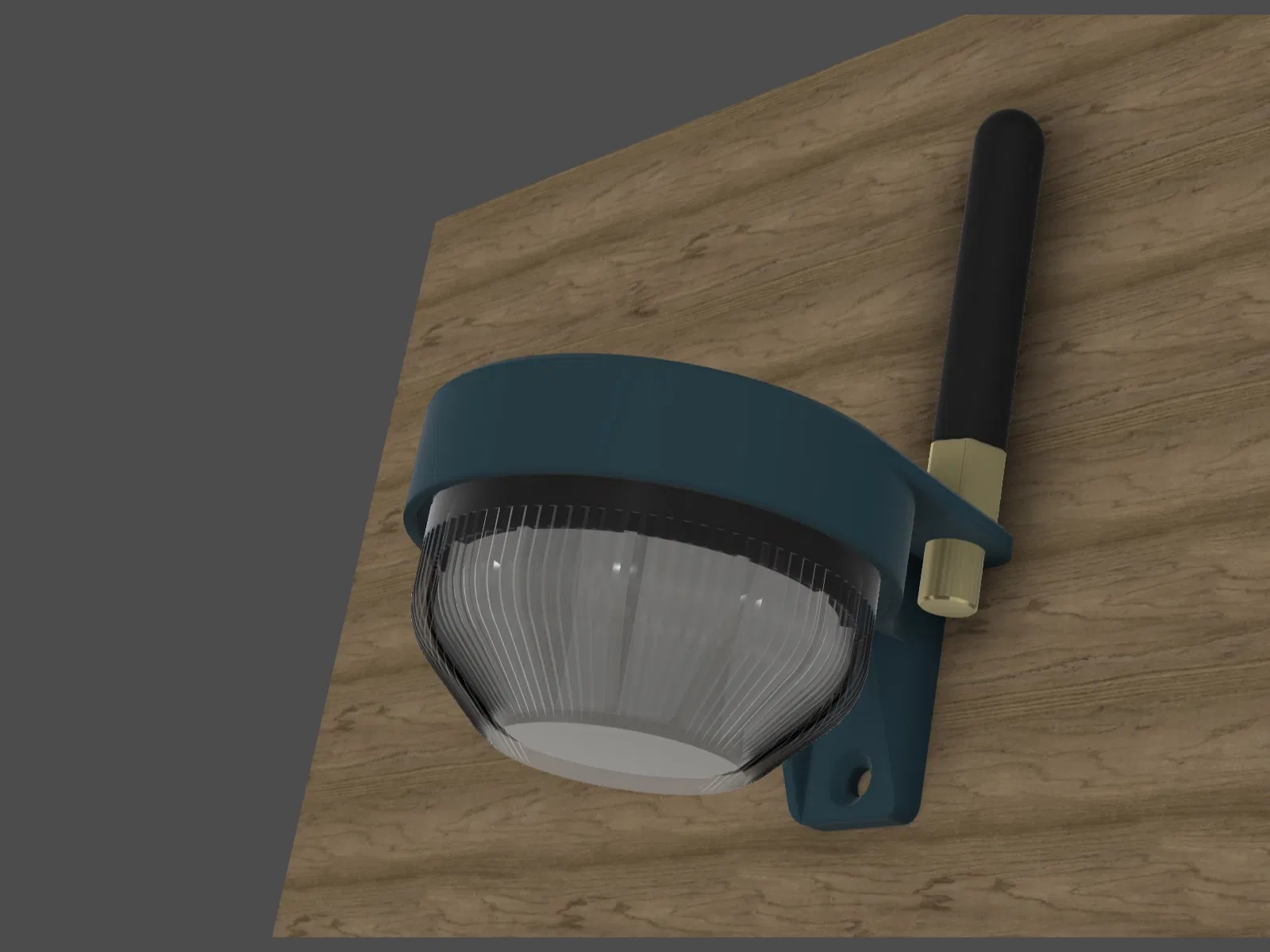 - Thêm giá treo tường. Đèn cần được dán hoặc băng dính vào giá treo. Nó cũng cần một dây cáp góc hoặc bộ chuyển đổi (xem ảnh). Cái này cần được lắp trước khi gắn đèn vào giá, hoặc bạn sẽ không lắp vào được. Giá treo tường được làm để chống mưa.