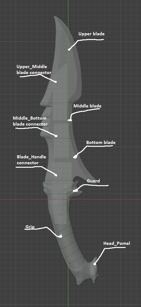 Mô hình dao găm giả tưởng được tạo bằng Blender. Bạn có thể in 3D mô hình này để làm đạo cụ cosplay, vũ khí giả tưởng hoặc sưu tầm.