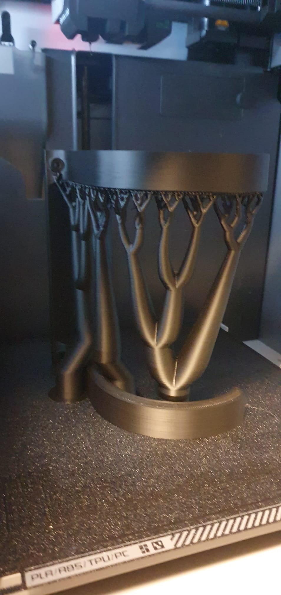 Nó được thiết kế nguyên khối để khoảng cách và góc của hai cái kẹp luôn đúng ngay lập tức. Bạn sẽ cần support nếu muốn in nguyên khối (bạn cũng có thể tách ra để in). Khoảng 20g support là ổn theo ý kiến của mình, đỡ phải đo đạc gì hết.