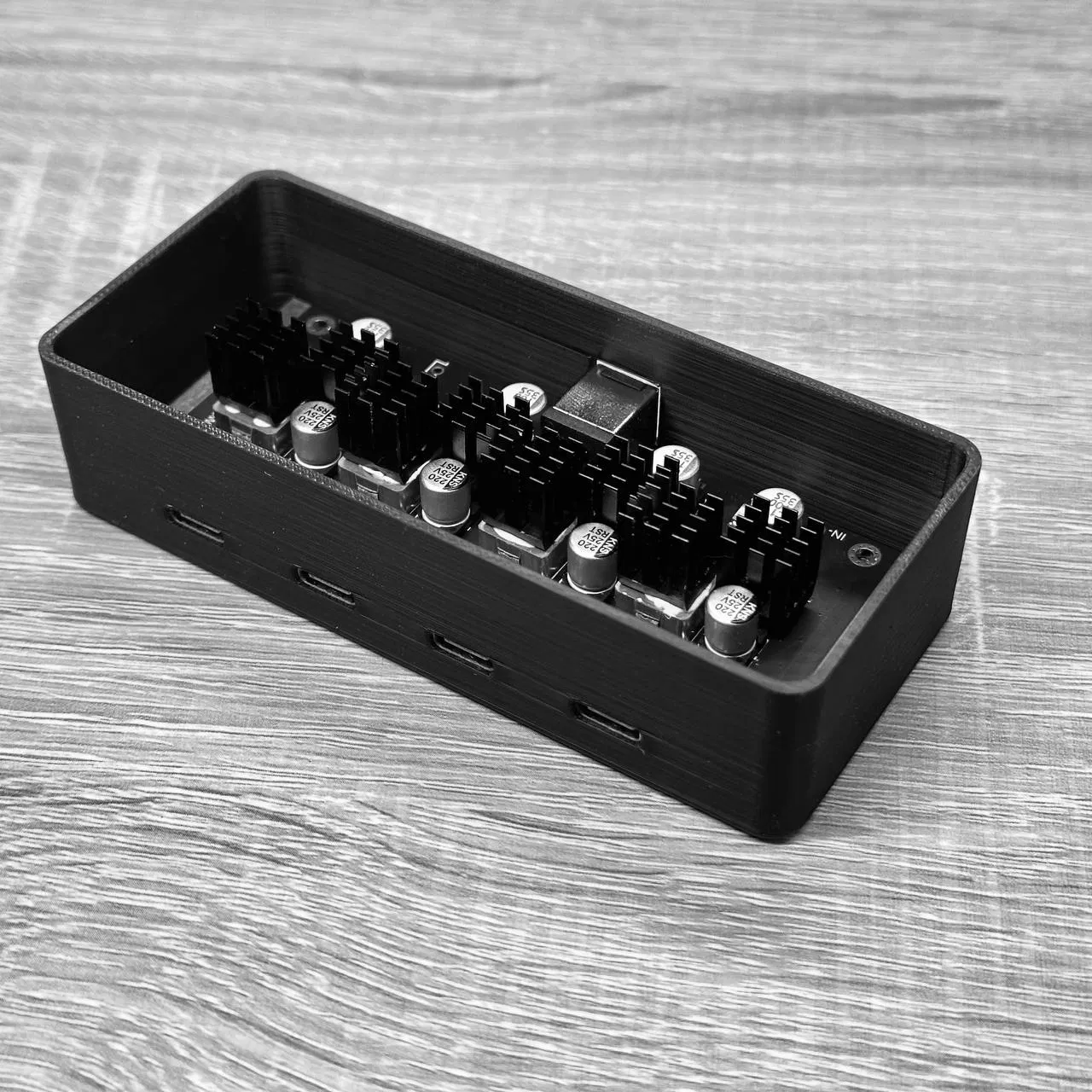 Vỏ được thiết kế cho module sạc nhanh PD65W 4 cổng từ AliExpress, có tích hợp tản nhiệt. Chiều cao vỏ cho phép lắp tản nhiệt 12mm, giúp làm mát hiệu quả hơn. Có hướng dẫn in chi tiết cho từng bộ phận, bao gồm cả Grill.stl và lưu ý quan trọng về việc hiệu chỉnh cài đặt in cầu nối cho các lỗ cắm Type-C. Khuyến khích dùng vật liệu chịu nhiệt.