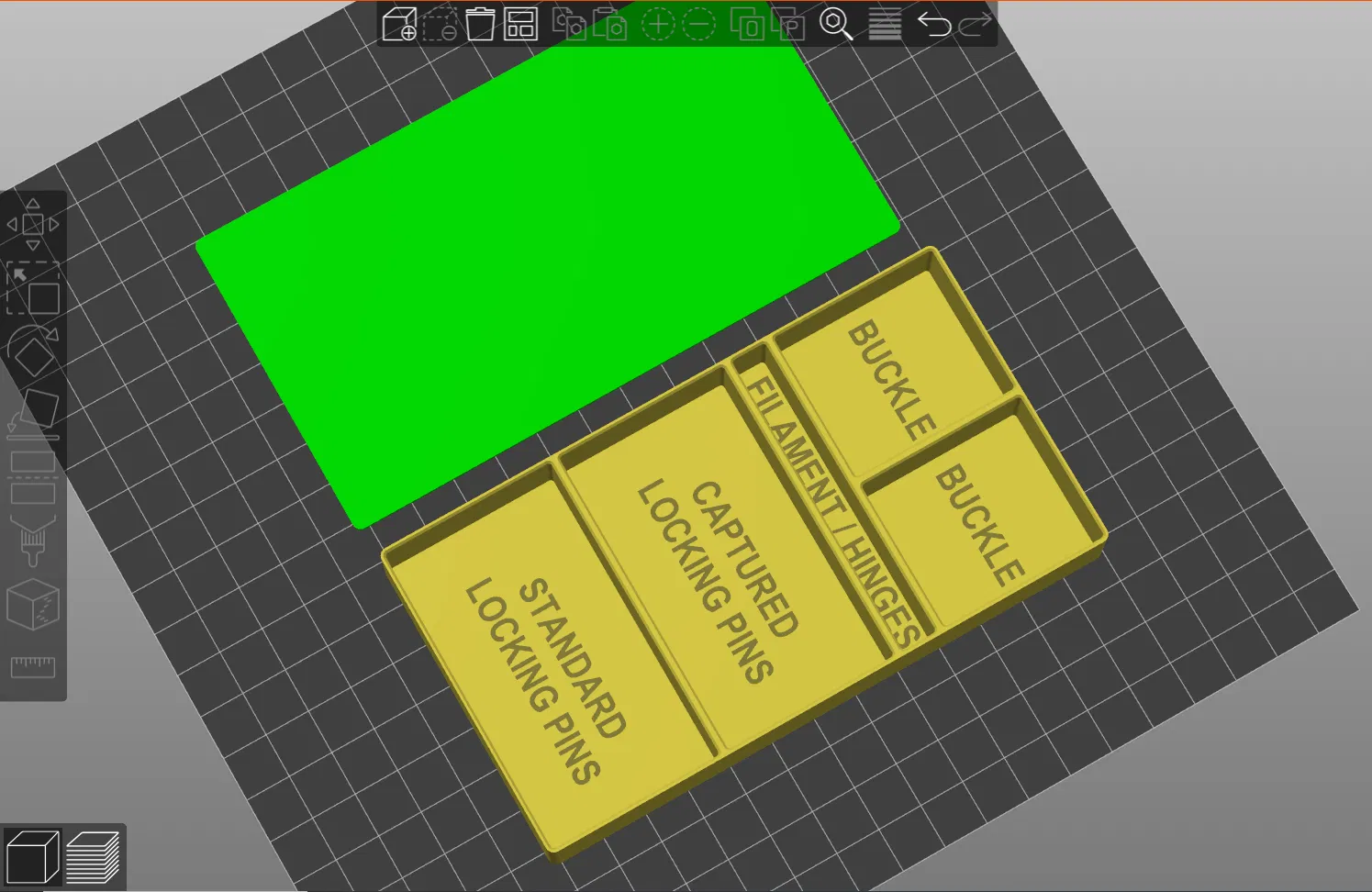 Tiếp theo, bạn có thể in bất kỳ bộ phận chèn đế nào có sẵn, hoặc bạn có thể sử dụng bộ phận chèn trống được cung cấp làm mẫu để tùy chỉnh của riêng bạn! Các bộ phận chèn đế, như tên gọi, được lắp vào vỏ đế để chia đế thành các ngăn tổ chức nhỏ hơn. Các bộ phận chèn đế cũng có thể được sử dụng để thêm một chút màu sắc cho bản in của bạn để phù hợp với phong cách/chủ đề thiết kế yêu thích của bạn. Nó được thiết kế để vừa khít, nhưng nếu bạn muốn cố định chắc chắn vào vị trí, bạn có thể thêm một hoặc hai giọt keo siêu dính bên dưới.