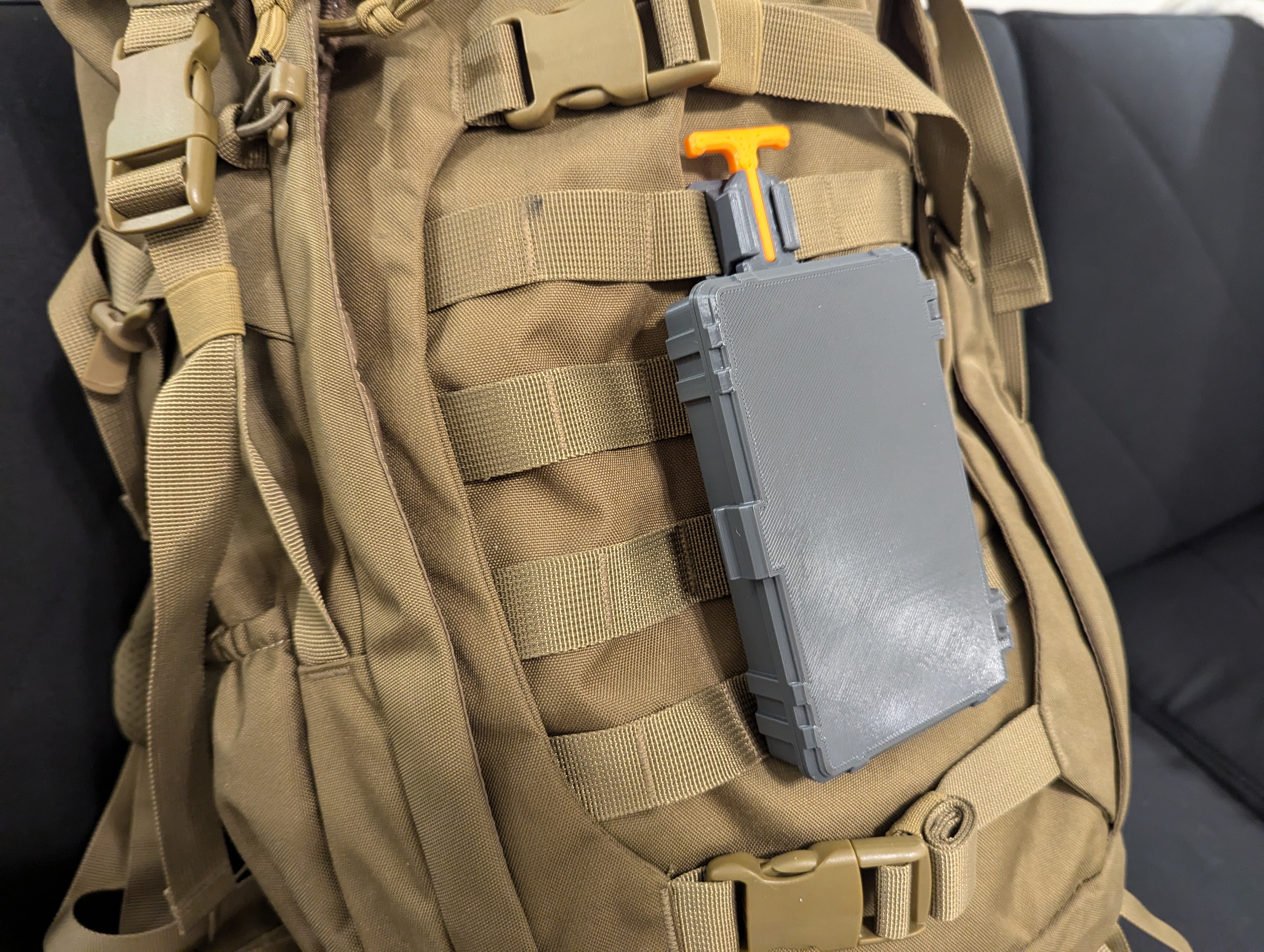 QUICK-CLIP là một hệ thống gắn kết đa năng mà tôi thiết kế cho ba lô và dây đeo MOLLE. Đây là một hộp đựng/tổ chức cứng cáp với nhiều bộ phận chèn khác nhau đi kèm với các bố cục khác nhau để phù hợp nhất với nhu cầu của bạn. Nó được thiết kế để tích hợp với bộ khởi động cơ bản (tìm thấy trong hồ sơ của tôi). Nó được gắn và tháo ra khỏi hệ thống gắn kết theo cách tương tự như các mô-đun khác. Ngoài ra còn có một đế đi kèm trong các tệp mà không có kẹp gắn vào, vì vậy nó cũng có thể được sử dụng cho các mục đích khác!