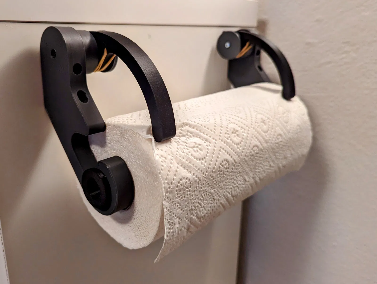 Mình in mẫu này bằng nhựa PLA. Chỉ cần dùng support cho phần kẹp và phần giữ cuộn thôi.