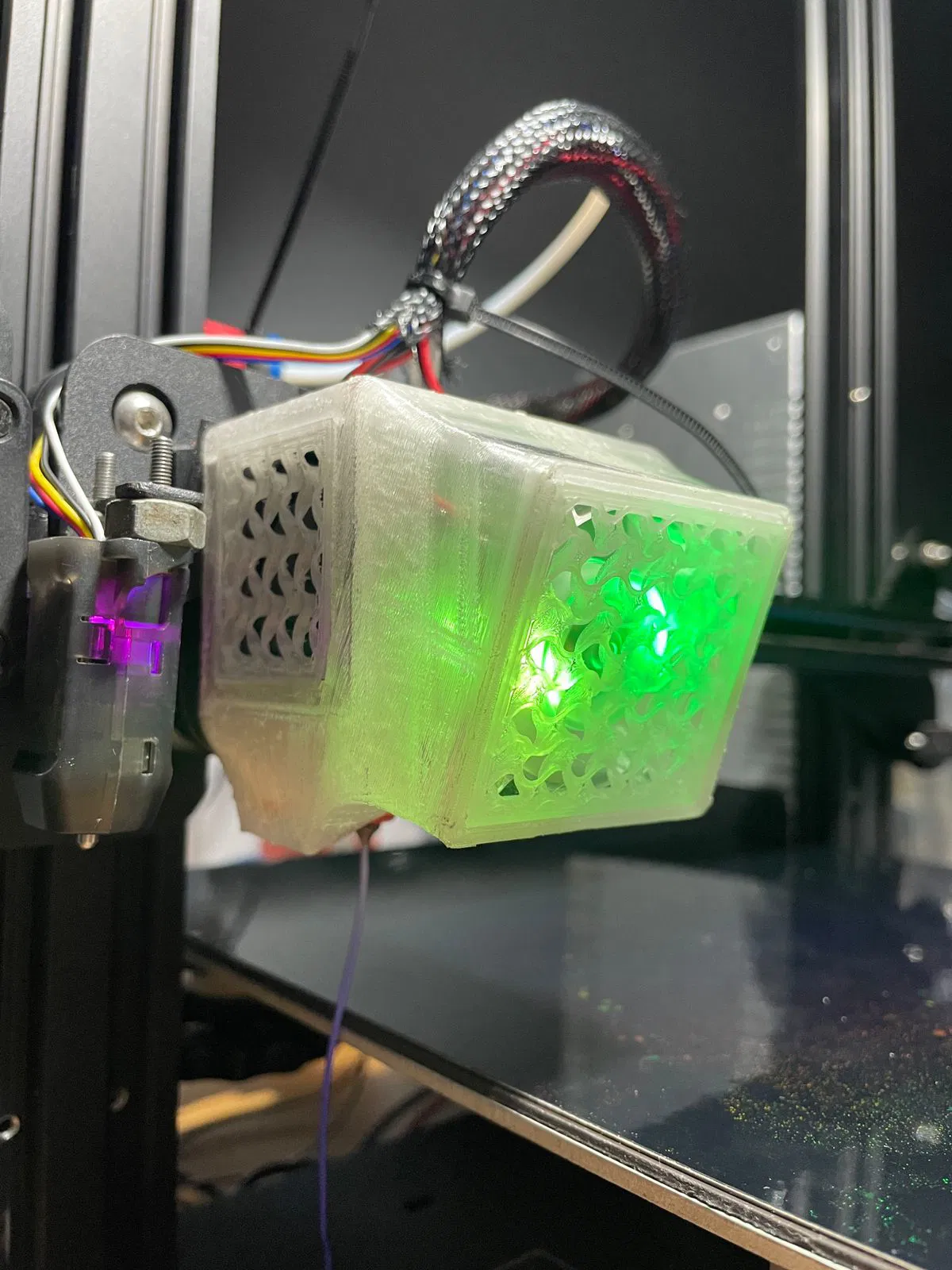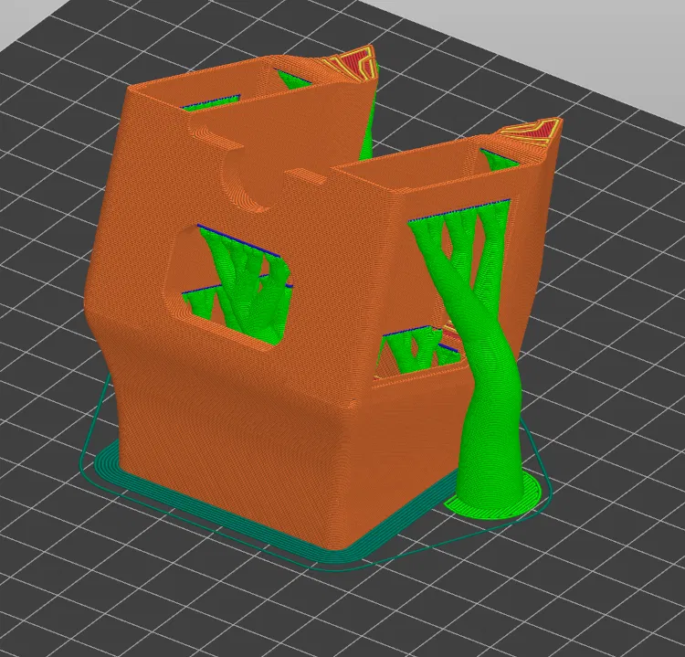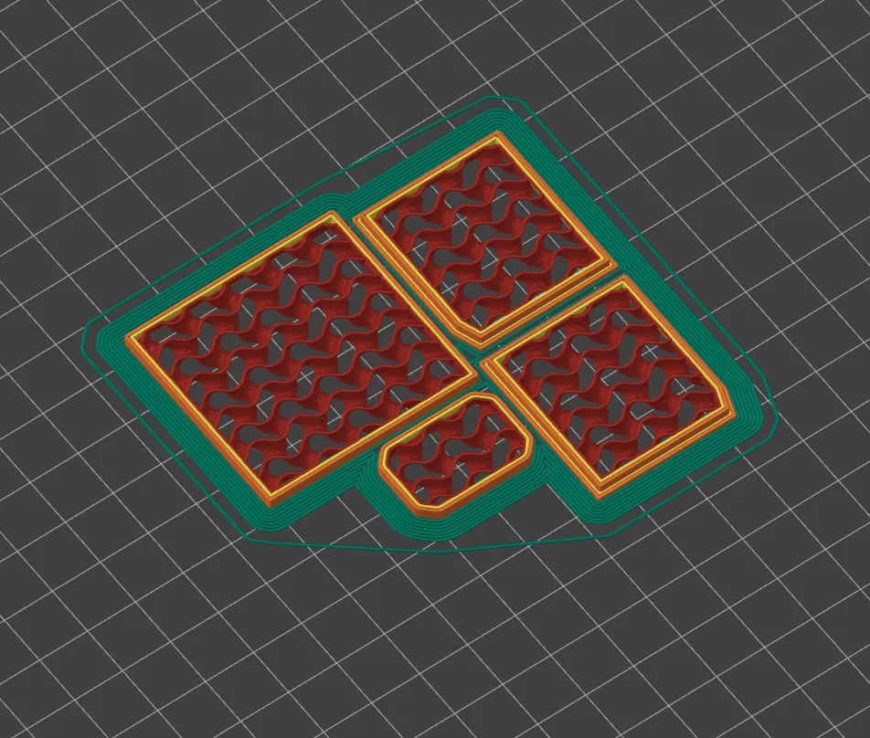 • Bảo vệ quạt khỏi tay và mấy cái có thể làm gãy nó: Mình chế cái part có đổ đầy gyroid (nhìn nó đẹp và "hữu cơ" hơn) nhét vô mấy cái khoảng trống. Nó không khớp hoàn toàn với chỗ quạt bên hông, nhưng chúng nó không bị mất hiệu suất.